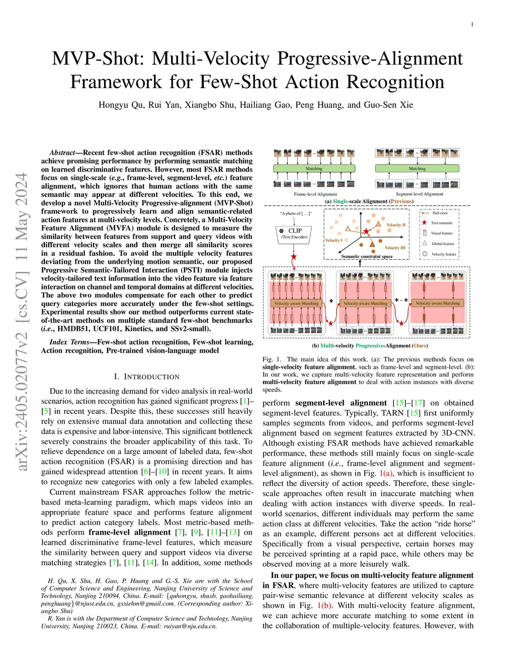 MVP-Shot: Multi-Velocity Progressive-Alignment Framework for Few-Shot Action Recognition