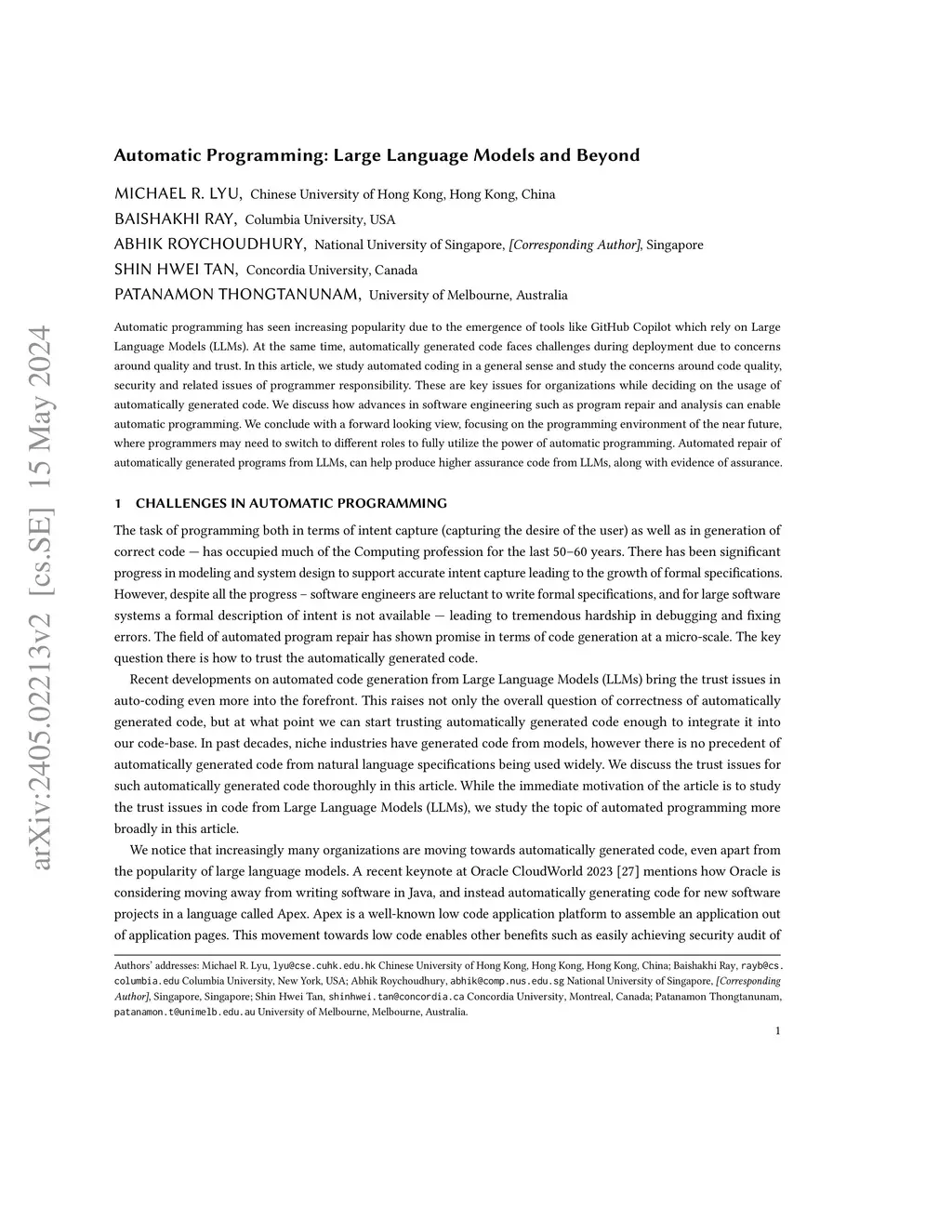 Automatic Programming: Large Language Models and Beyond