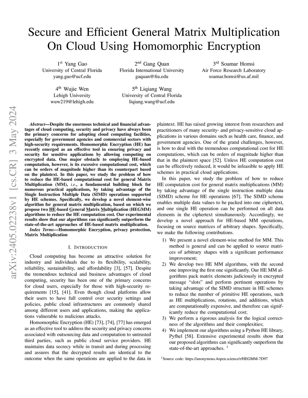 Secure and Efficient General Matrix Multiplication On Cloud Using