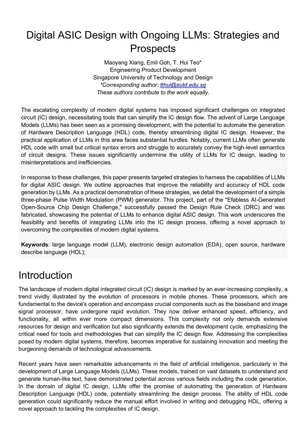 The escalating complexity of modern digital systems has imposed significant challenges on integrated circuit (IC) design, necessitating tools that can simplify the IC design flow. The advent of Large Language Models (LLMs) has been seen as a promising development, with the potential to automate the generation of Hardware Description Language (HDL) code, thereby streamlining digital IC design. However, the practical application of LLMs in this area faces substantial hurdles. Notably, current LLMs often generate HDL code with small but critical syntax errors and struggle to accurately convey the high-level semantics of circuit designs. These issues significantly undermine the utility of LLMs for IC design, leading to misinterpretations and inefficiencies. In response to these challenges, this paper presents targeted strategies to harness the capabilities of LLMs for digital ASIC design. We outline approaches that improve the reliability and accuracy of HDL code generation by LLMs. As a practical demonstration of these strategies, we detail the development of a simple three-phase Pulse Width Modulation (PWM) generator. This project, part of the "Efabless AI-Generated Open-Source Chip Design Challenge," successfully passed the Design Rule Check (DRC) and was fabricated, showcasing the potential of LLMs to enhance digital ASIC design. This work underscores the feasibility and benefits of integrating LLMs into the IC design process, offering a novel approach to overcoming the complexities of modern digital systems.