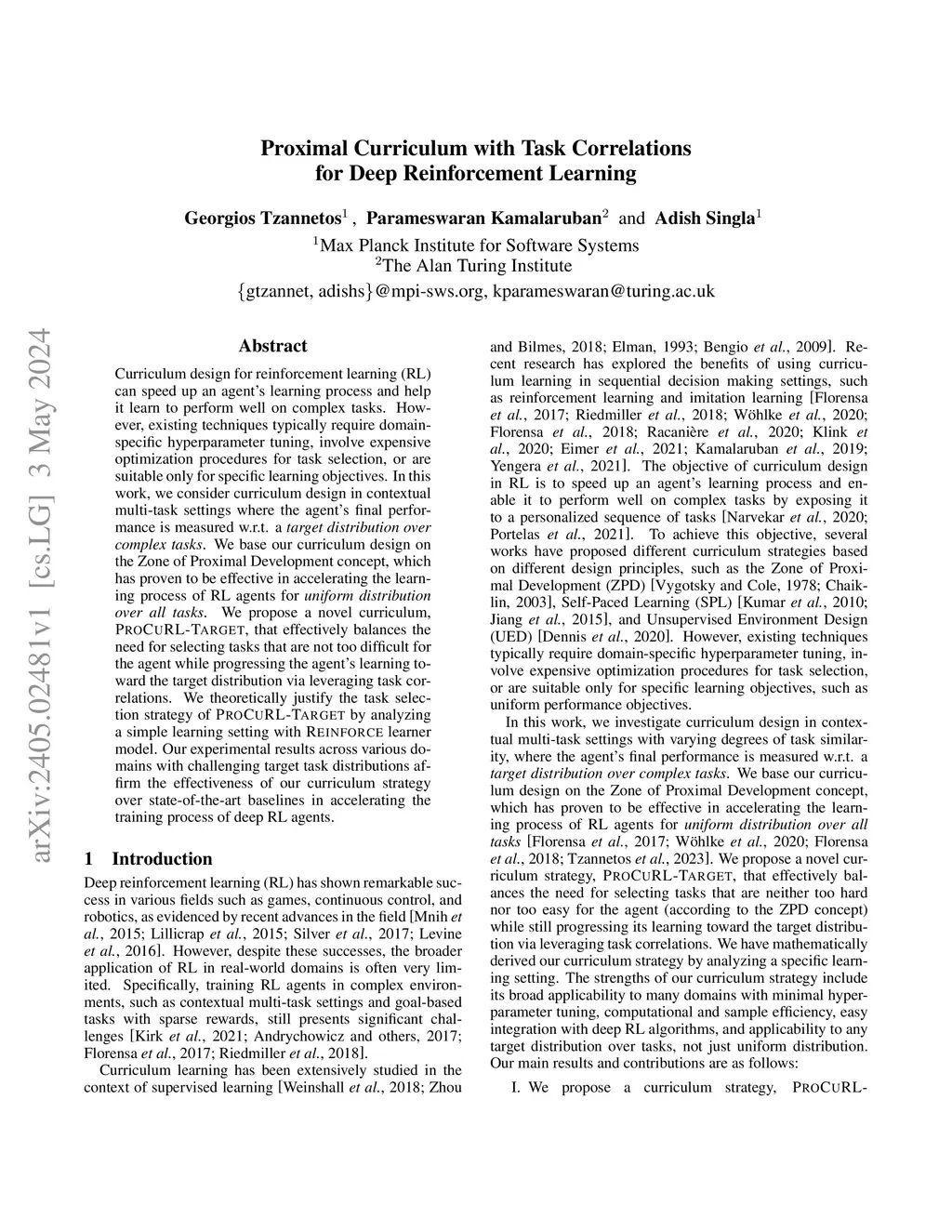 Proximal Curriculum with Task Correlations for Deep Reinforcement