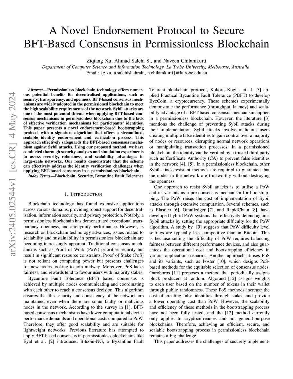 Permissionless blockchain technology offers numerous potential benefits for decentralised applications, such as security, transparency, and openness. BFT-based consensus mechanisms are widely adopted in the permissioned blockchain to meet the high scalability requirements of the network. Sybil attacks are one of the most potential threats when applying BFT-based consensus mechanisms in permissionless blockchain due to the lack of effective verification mechanisms for participants' identities. This paper presents a novel endorsement-based bootstrapping protocol with a signature algorithm that offers a streamlined, scalable identity endorsement and verification process. This approach effectively safeguards the BFT-based consensus mechanism against Sybil attacks. Using our proposed method, we have conducted thorough security analyses and simulation experiments to assess security, robustness, and scalability advantages in large-scale networks. Our results demonstrate that the scheme can effectively address the identity verification challenges when applying BFT-based consensus in a permissionless blockchain.