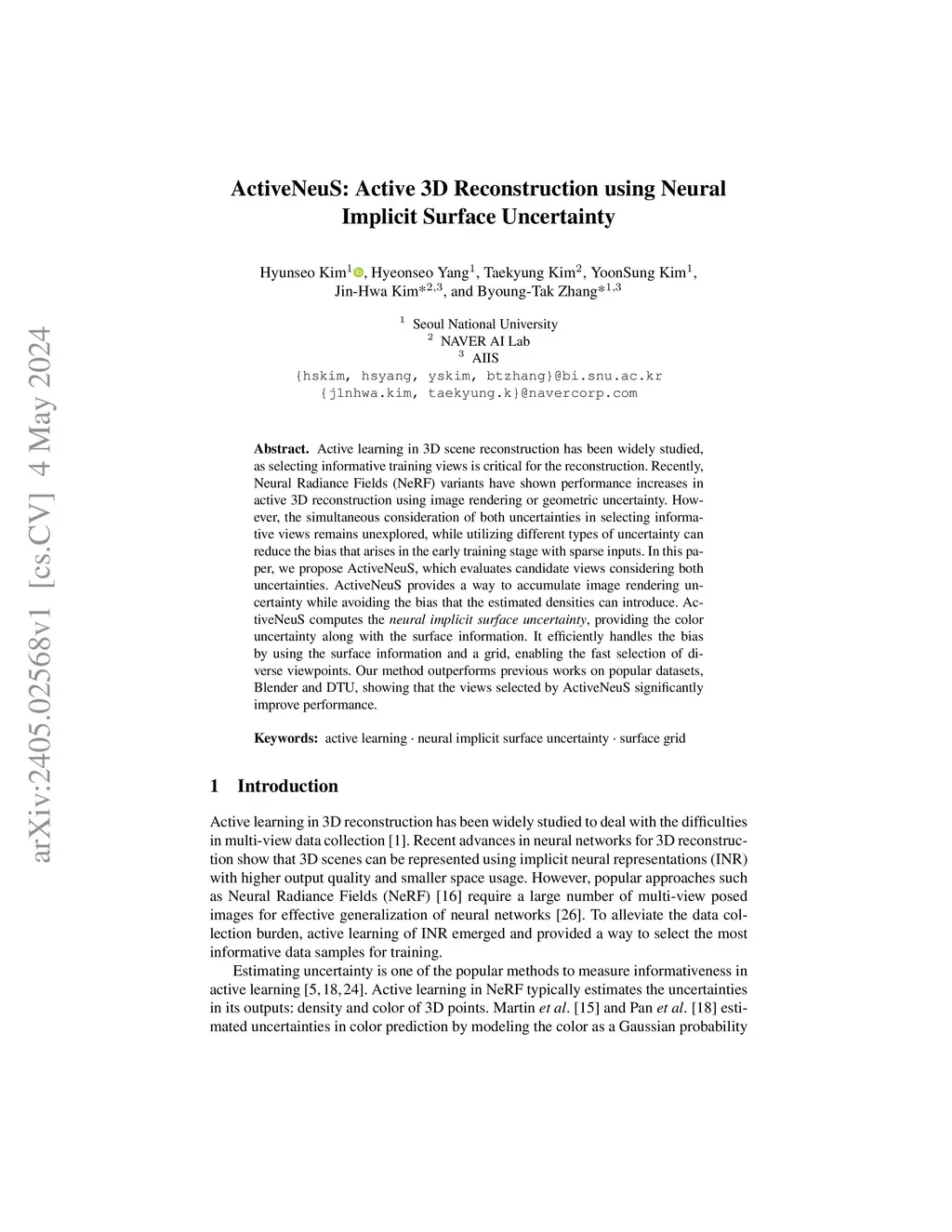 Surface-Based Visibility-Guided Uncertainty for Continuous Active 3D Neural Reconstruction