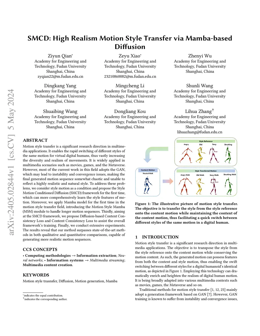 SMCD: High Realism Motion Style Transfer via Mamba-based Diffusion