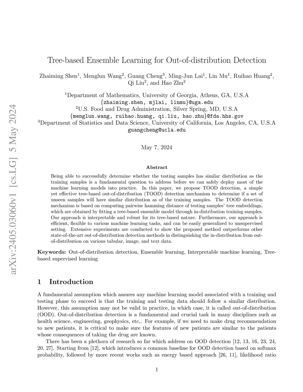 Being able to successfully determine whether the testing samples has similar distribution as the training samples is a fundamental question to address before we can safely deploy most of the machine learning models into practice. In this paper, we propose TOOD detection, a simple yet effective tree-based out-of-distribution (TOOD) detection mechanism to determine if a set of unseen samples will have similar distribution as of the training samples. The TOOD detection mechanism is based on computing pairwise hamming distance of testing samples' tree embeddings, which are obtained by fitting a tree-based ensemble model through in-distribution training samples. Our approach is interpretable and robust for its tree-based nature. Furthermore, our approach is efficient, flexible to various machine learning tasks, and can be easily generalized to unsupervised setting. Extensive experiments are conducted to show the proposed method outperforms other state-of-the-art out-of-distribution detection methods in distinguishing the in-distribution from out-of-distribution on various tabular, image, and text data.