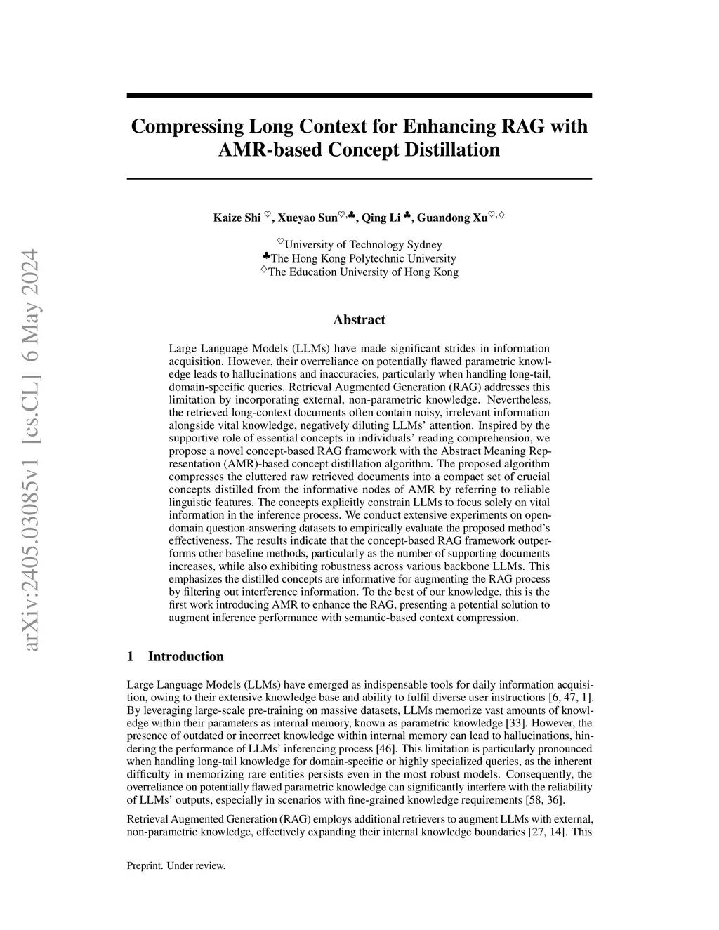 Compressing Long Context for Enhancing RAG with AMR-based Concept