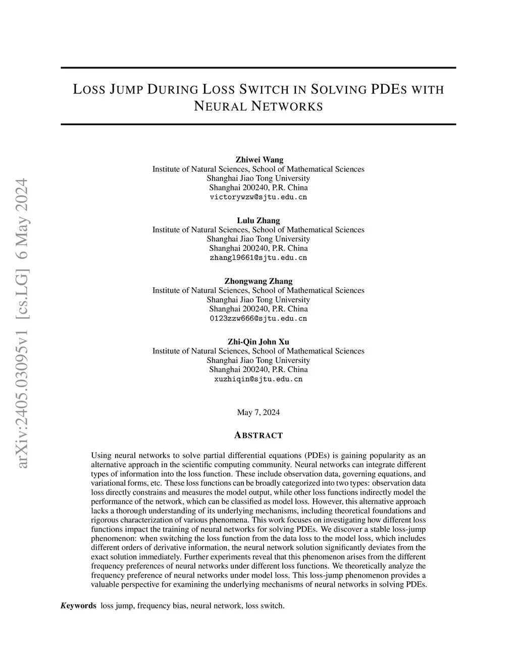 Loss Jump During Loss Switch in Solving PDEs with Neural Networks