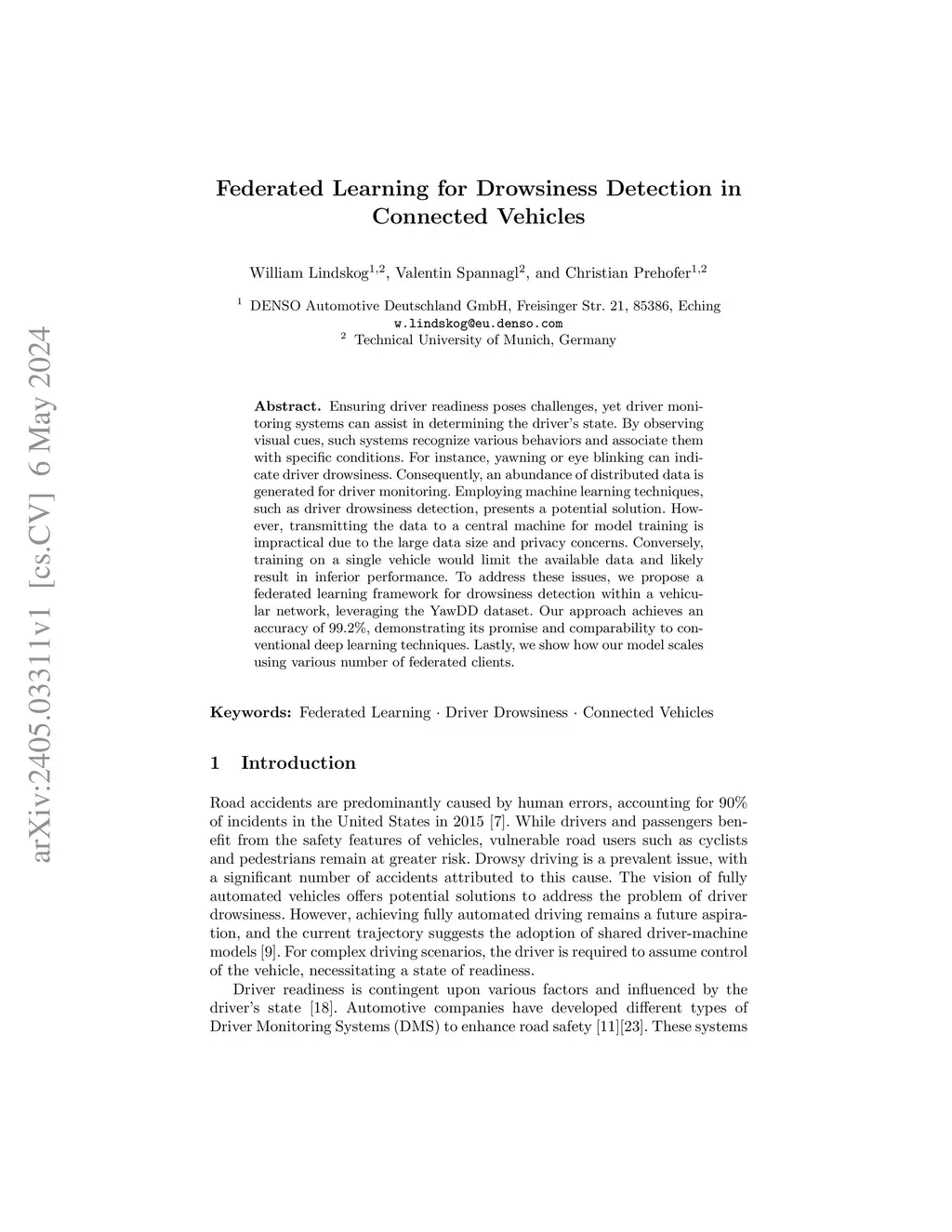 Federated Learning for Drowsiness Detection in Connected Vehicles