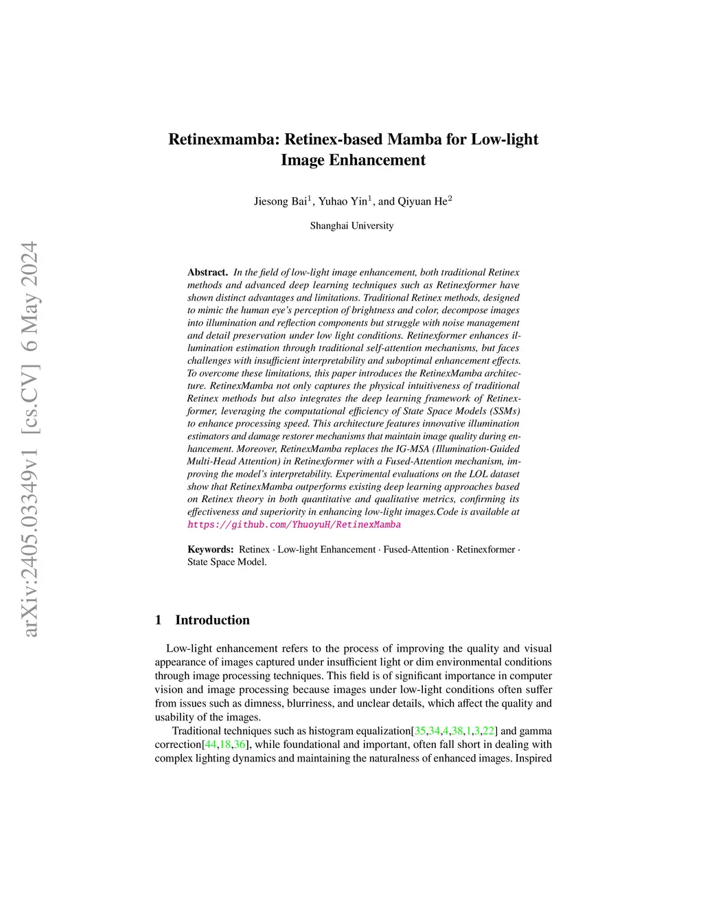 In the field of low-light image enhancement, both traditional Retinex methods and advanced deep learning techniques such as Retinexformer have shown distinct advantages and limitations. Traditional Retinex methods, designed to mimic the human eye's perception of brightness and color, decompose images into illumination and reflection components but struggle with noise management and detail preservation under low light conditions. Retinexformer enhances illumination estimation through traditional self-attention mechanisms, but faces challenges with insufficient interpretability and suboptimal enhancement effects. To overcome these limitations, this paper introduces the RetinexMamba architecture. RetinexMamba not only captures the physical intuitiveness of traditional Retinex methods but also integrates the deep learning framework of Retinexformer, leveraging the computational efficiency of State Space Models (SSMs) to enhance processing speed. This architecture features innovative illumination estimators and damage restorer mechanisms that maintain image quality during enhancement. Moreover, RetinexMamba replaces the IG-MSA (Illumination-Guided Multi-Head Attention) in Retinexformer with a Fused-Attention mechanism, improving the model's interpretability. Experimental evaluations on the LOL dataset show that RetinexMamba outperforms existing deep learning approaches based on Retinex theory in both quantitative and qualitative metrics, confirming its effectiveness and superiority in enhancing low-light images.
