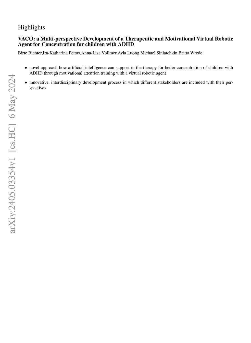 VACO: a Multi-perspective Development of a Therapeutic and Motivational