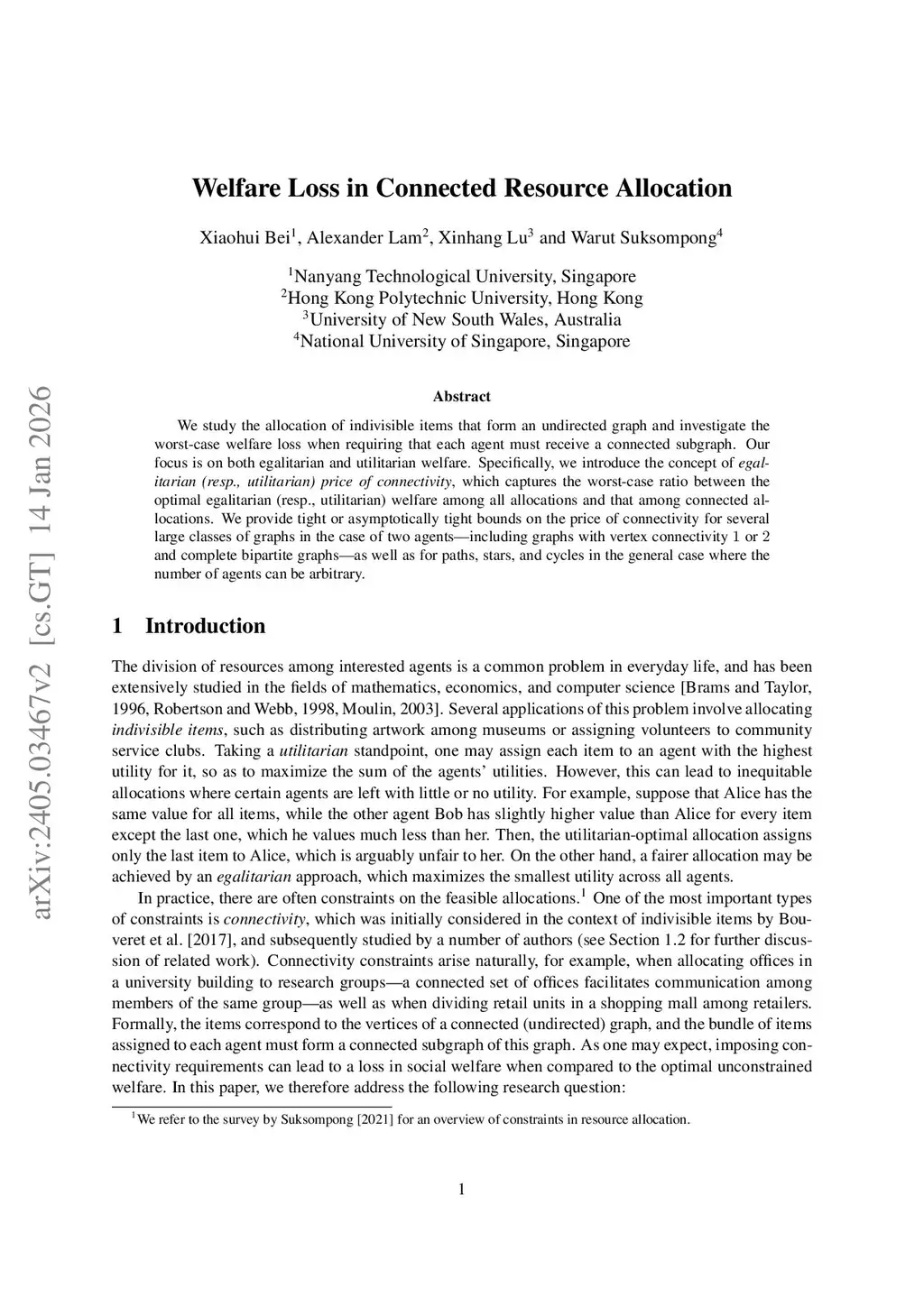 Welfare Loss in Connected Resource Allocation