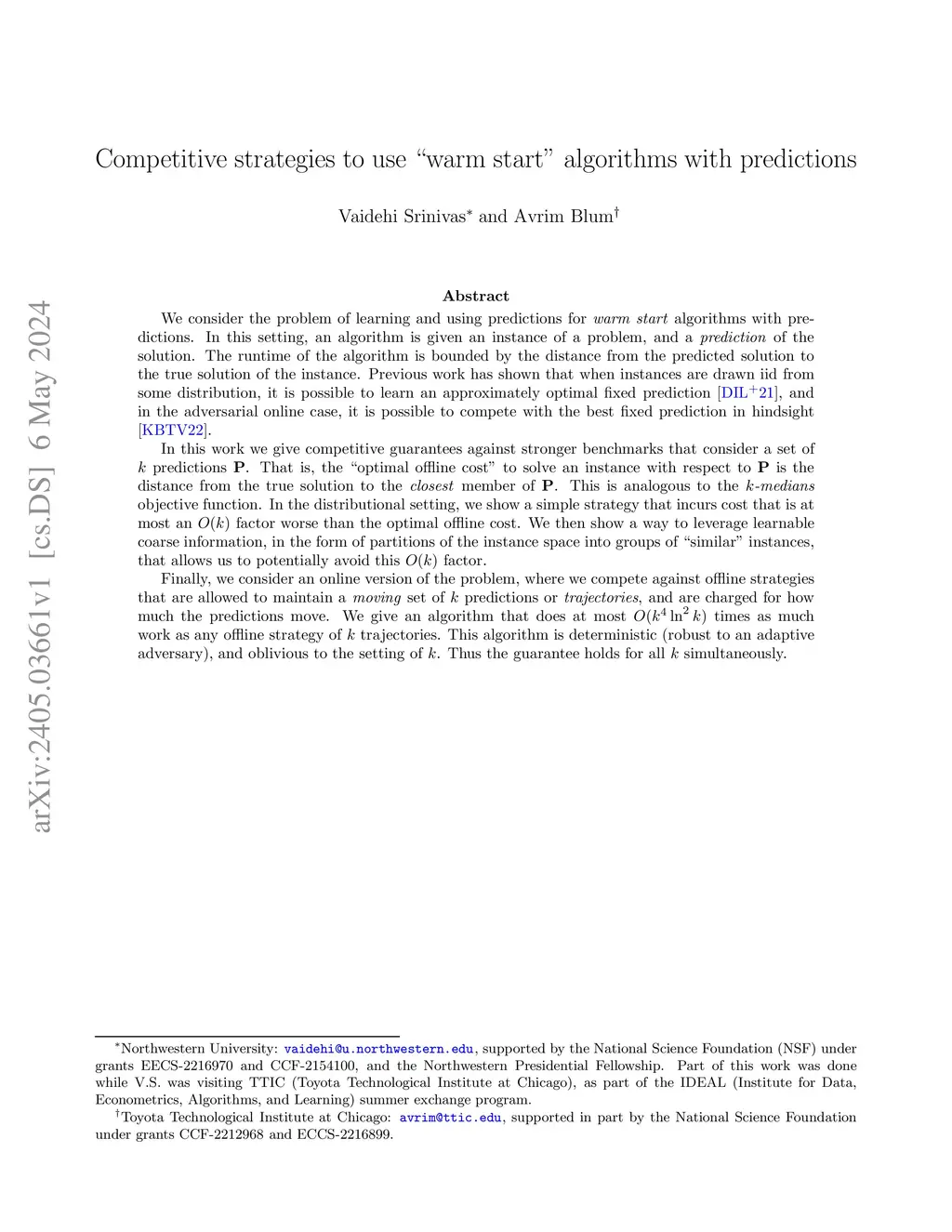 We consider the problem of learning and using predictions for warm start algorithms with predictions. In this setting, an algorithm is given an instance of a problem, and a prediction of the solution. The runtime of the algorithm is bounded by the distance from the predicted solution to the true solution of the instance. Previous work has shown that when instances are drawn iid from some distribution, it is possible to learn an approximately optimal fixed prediction (Dinitz et al, NeurIPS 2021), and in the adversarial online case, it is possible to compete with the best fixed prediction in hindsight (Khodak et al, NeurIPS 2022). In this work we give competitive guarantees against stronger benchmarks that consider a set of predictions . That is, the "optimal offline cost" to solve an instance with respect to is the distance from the true solution to the closest member of . This is analogous to the -medians objective function. In the distributional setting, we show a simple strategy that incurs cost that is at most an factor worse than the optimal offline cost. We then show a way to leverage learnable coarse information, in the form of partitions of the instance space into groups of "similar" instances, that allows us to potentially avoid this factor. Finally, we consider an online version of the problem, where we compete against offline strategies that are allowed to maintain a moving set of predictions or "trajectories," and are charged for how much the predictions move. We give an algorithm that does at most times as much work as any offline strategy of trajectories. This algorithm is deterministic (robust to an adaptive adversary), and oblivious to the setting of . Thus the guarantee holds for all simultaneously.