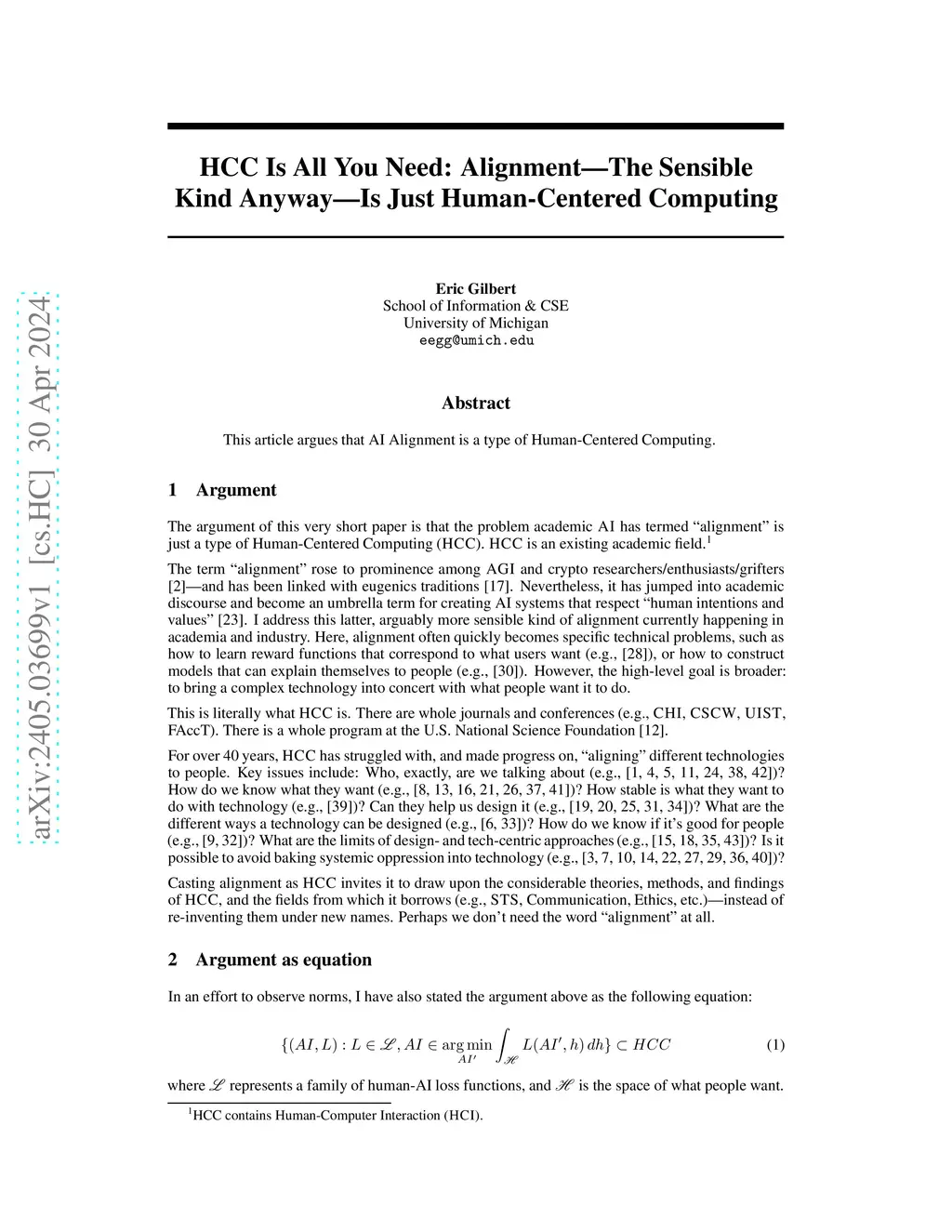 This article argues that AI Alignment is a type of Human-Centered Computing.