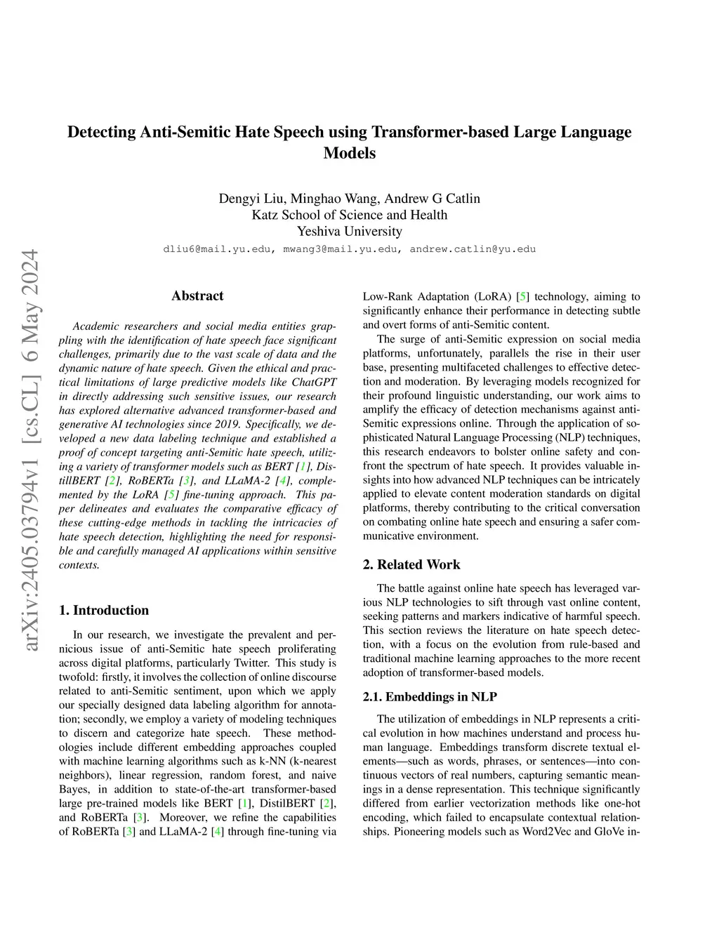 Academic researchers and social media entities grappling with the identification of hate speech face significant challenges, primarily due to the vast scale of data and the dynamic nature of hate speech. Given the ethical and practical limitations of large predictive models like ChatGPT in directly addressing such sensitive issues, our research has explored alternative advanced transformer-based and generative AI technologies since 2019. Specifically, we developed a new data labeling technique and established a proof of concept targeting anti-Semitic hate speech, utilizing a variety of transformer models such as BERT (arXiv:1810.04805), DistillBERT (arXiv:1910.01108), RoBERTa (arXiv:1907.11692), and LLaMA-2 (arXiv:2307.09288), complemented by the LoRA fine-tuning approach (arXiv:2106.09685). This paper delineates and evaluates the comparative efficacy of these cutting-edge methods in tackling the intricacies of hate speech detection, highlighting the need for responsible and carefully managed AI applications within sensitive contexts.