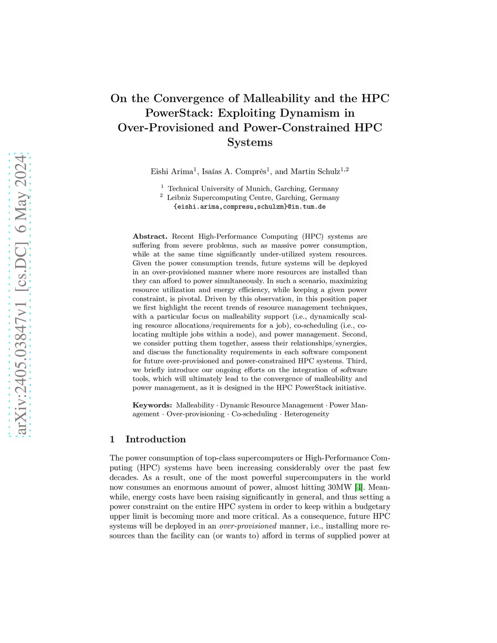 Recent High-Performance Computing (HPC) systems are facing important challenges, such as massive power consumption, while at the same time significantly under-utilized system resources. Given the power consumption trends, future systems will be deployed in an over-provisioned manner where more resources are installed than they can afford to power simultaneously. In such a scenario, maximizing resource utilization and energy efficiency, while keeping a given power constraint, is pivotal. Driven by this observation, in this position paper we first highlight the recent trends of resource management techniques, with a particular focus on malleability support (i.e., dynamically scaling resource allocations/requirements for a job), co-scheduling (i.e., co-locating multiple jobs within a node), and power management. Second, we consider putting them together, assess their relationships/synergies, and discuss the functionality requirements in each software component for future over-provisioned and power-constrained HPC systems. Third, we briefly introduce our ongoing efforts on the integration of software tools, which will ultimately lead to the convergence of malleability and power management, as it is designed in the HPC PowerStack initiative.