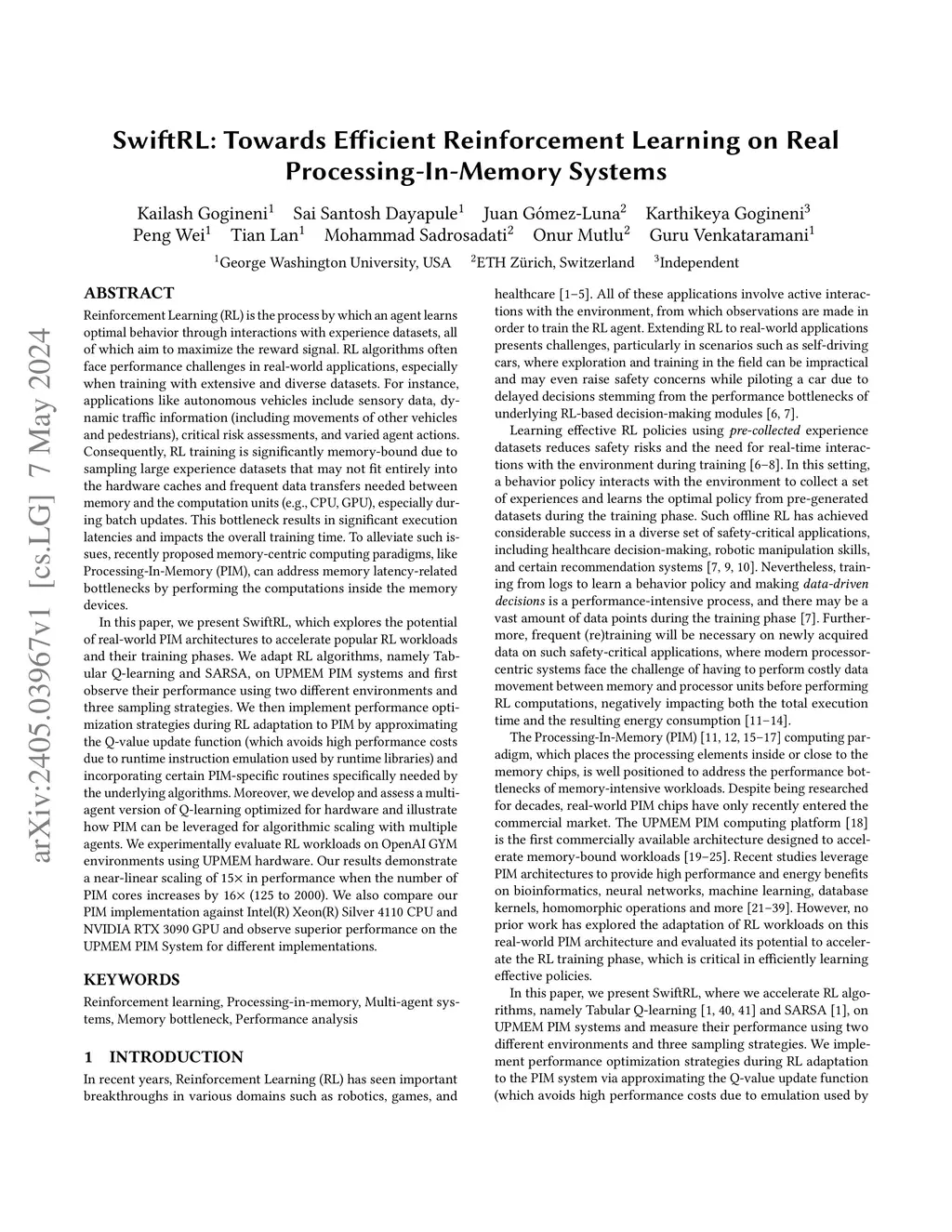 SwiftRL: Towards Efficient Reinforcement Learning on Real
