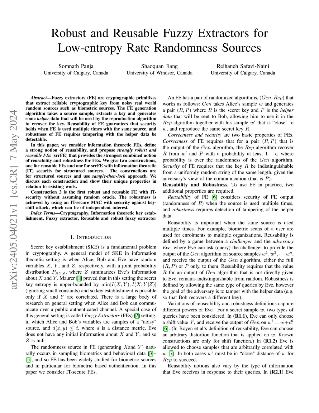 Fuzzy extractors (FE) are cryptographic primitives that extract reliable cryptographic key from noisy real world random sources such as biometric sources. The FE generation algorithm takes a source sample, extracts a key and generates some helper data that will be used by the reproduction algorithm to recover the key. Reusability of FE guarantees that security holds when FE is used multiple times with the same source, and robustness of FE requires tampering with the helper data be detectable. In this paper, we consider information theoretic FEs, define a strong notion of reusability, and propose strongly robust and reusable FEs (srrFE) that provides the strongest combined notion of reusability and robustness for FEs. We give two constructions, one for reusable FEs and one for srrFE with information theoretic (IT) security for structured sources. The constructions are for structured sources and use sample-then-lock approach. We discuss each construction and show their unique properties in relation to existing work. Construction 2 is the first robust and reusable FE with IT-security without assuming random oracle. The robustness is achieved by using an IT-secure MAC with security against key-shift attack, which can be of independent interest.