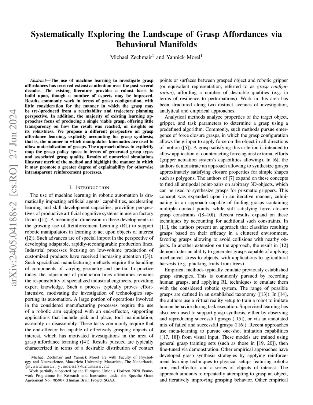 The use of machine learning to investigate grasp affordances has received extensive attention over the past several decades. The existing literature provides a robust basis to build upon, though a number of aspects may be improved. Results commonly work in terms of grasp configuration, with little consideration for the manner in which the grasp may be (re-)produced from a reachability and trajectory planning perspective. In addition, the majority of existing learning approaches focus of producing a single viable grasp, offering little transparency on how the result was reached, or insights on its robustness. We propose a different perspective on grasp affordance learning, explicitly accounting for grasp synthesis; that is, the manner in which manipulator kinematics are used to allow materialization of grasps. The approach allows to explicitly map the grasp policy space in terms of generated grasp types and associated grasp quality. Results of numerical simulations illustrate merit of the method and highlight the manner in which it may promote a greater degree of explainability for otherwise intransparent reinforcement processes.