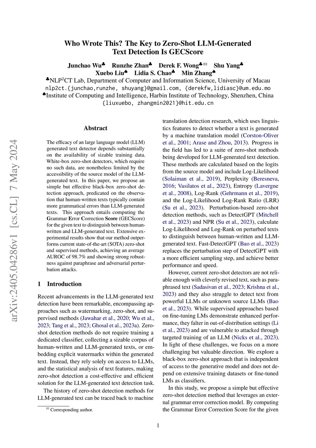Who Wrote This? The Key to Zero-Shot LLM-Generated Text Detection Is GECScore