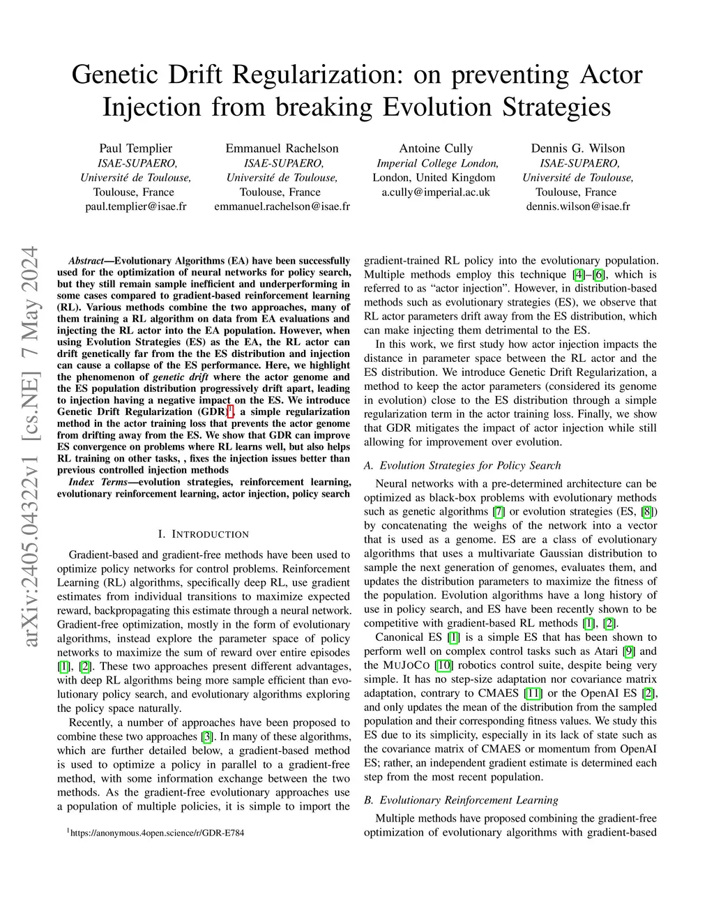 Genetic Drift Regularization: on preventing Actor Injection from