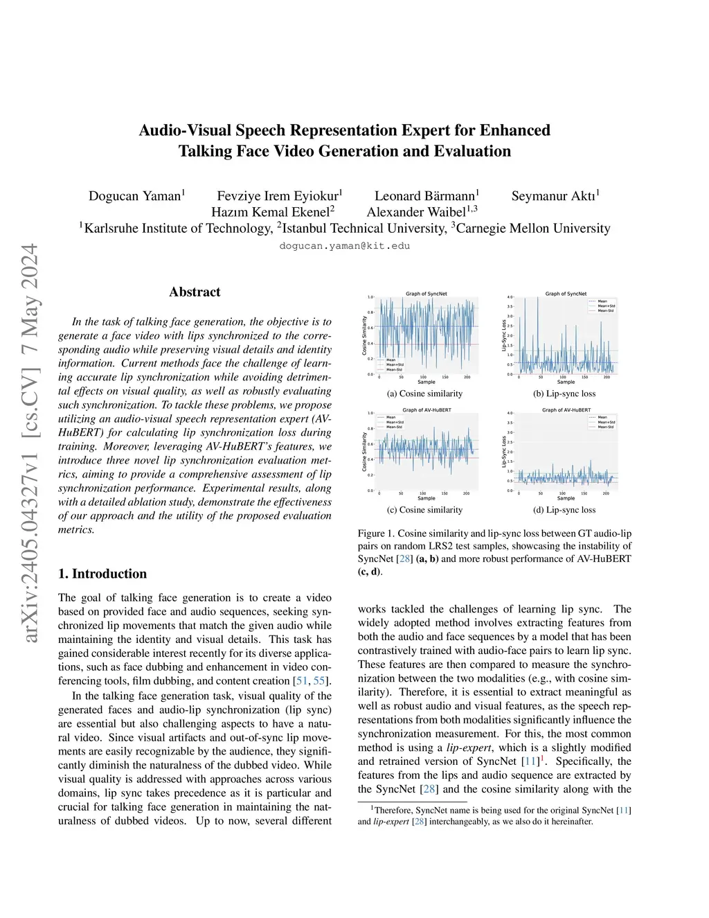 Audio-Visual Speech Representation Expert for Enhanced Talking Face