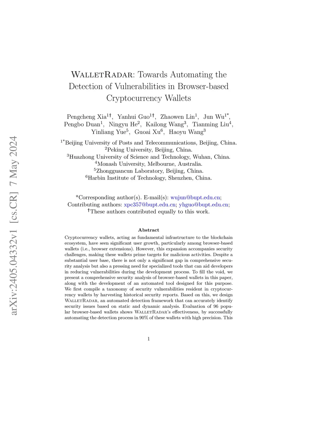 WALLETRADAR: Towards Automating the Detection of Vulnerabilities in