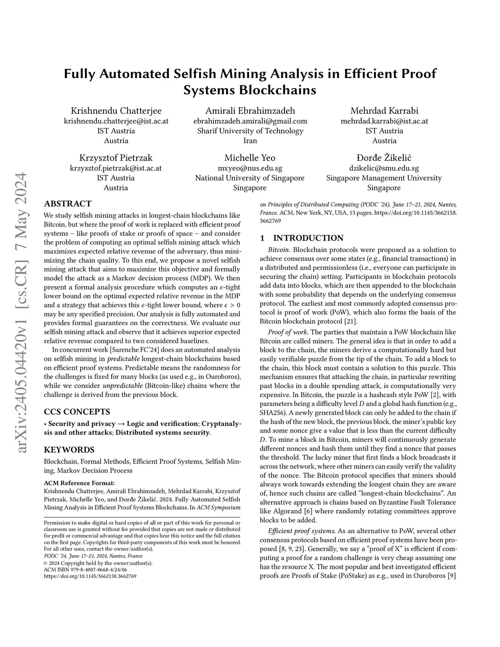 Fully Automated Selfish Mining Analysis in Efficient Proof Systems