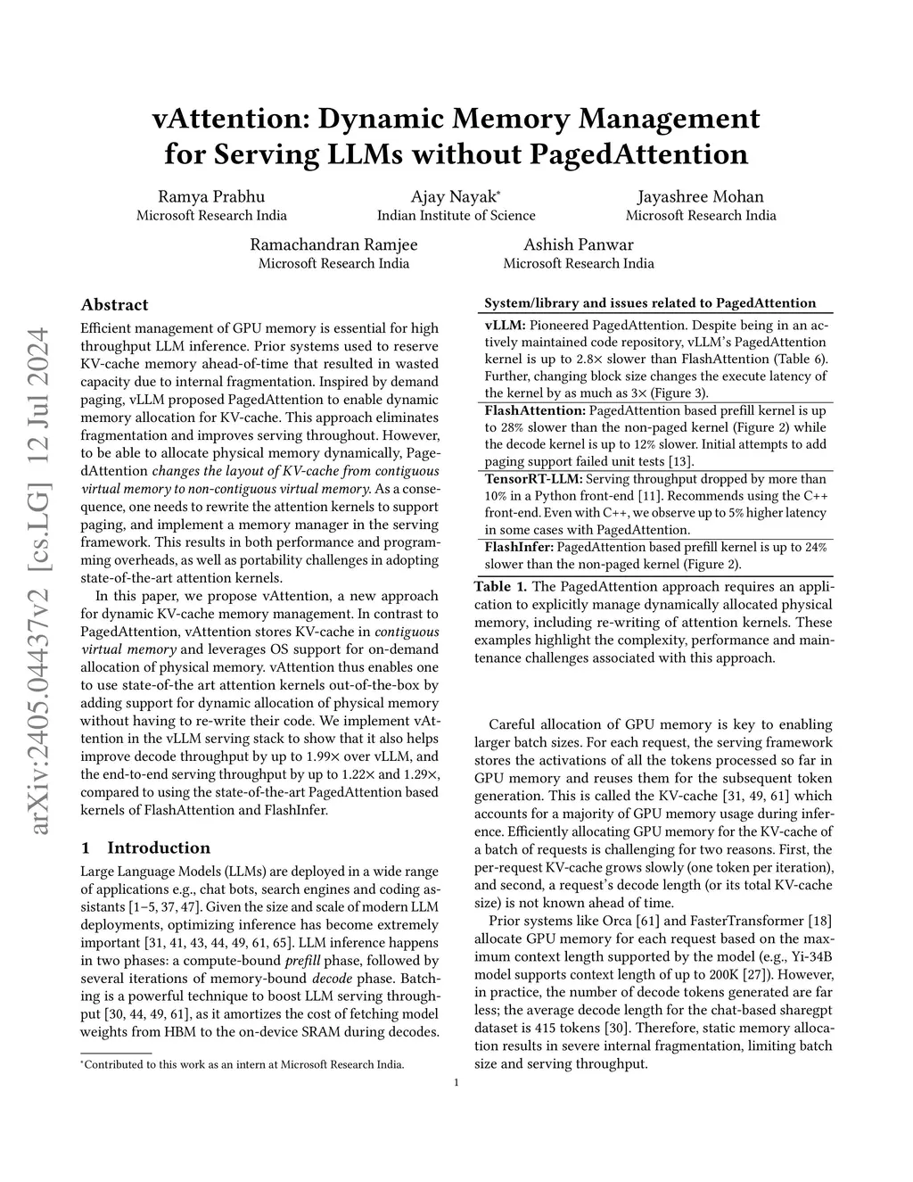 vAttention: Dynamic Memory Management for Serving LLMs without PagedAttention