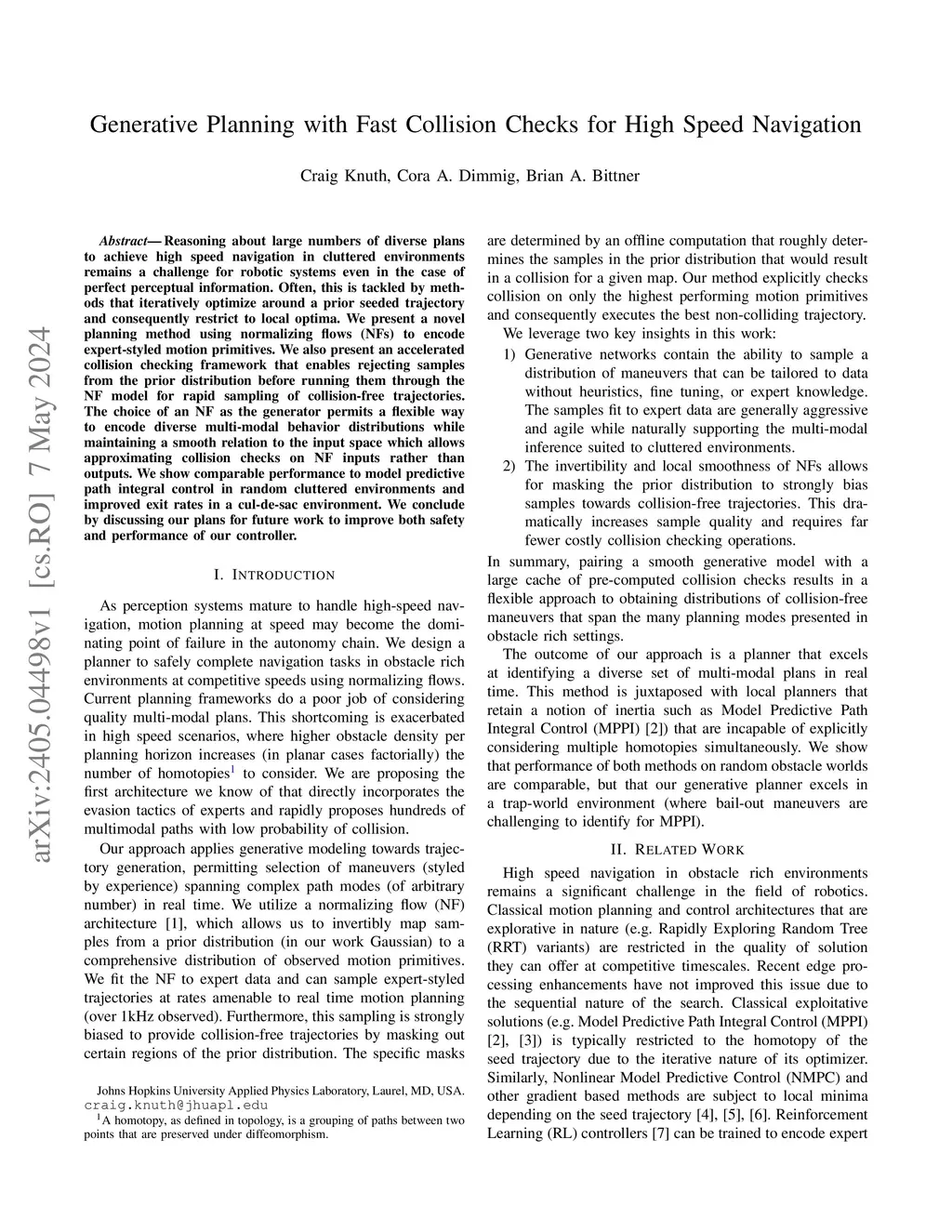 Generative Planning with Fast Collision Checks for High Speed Navigation