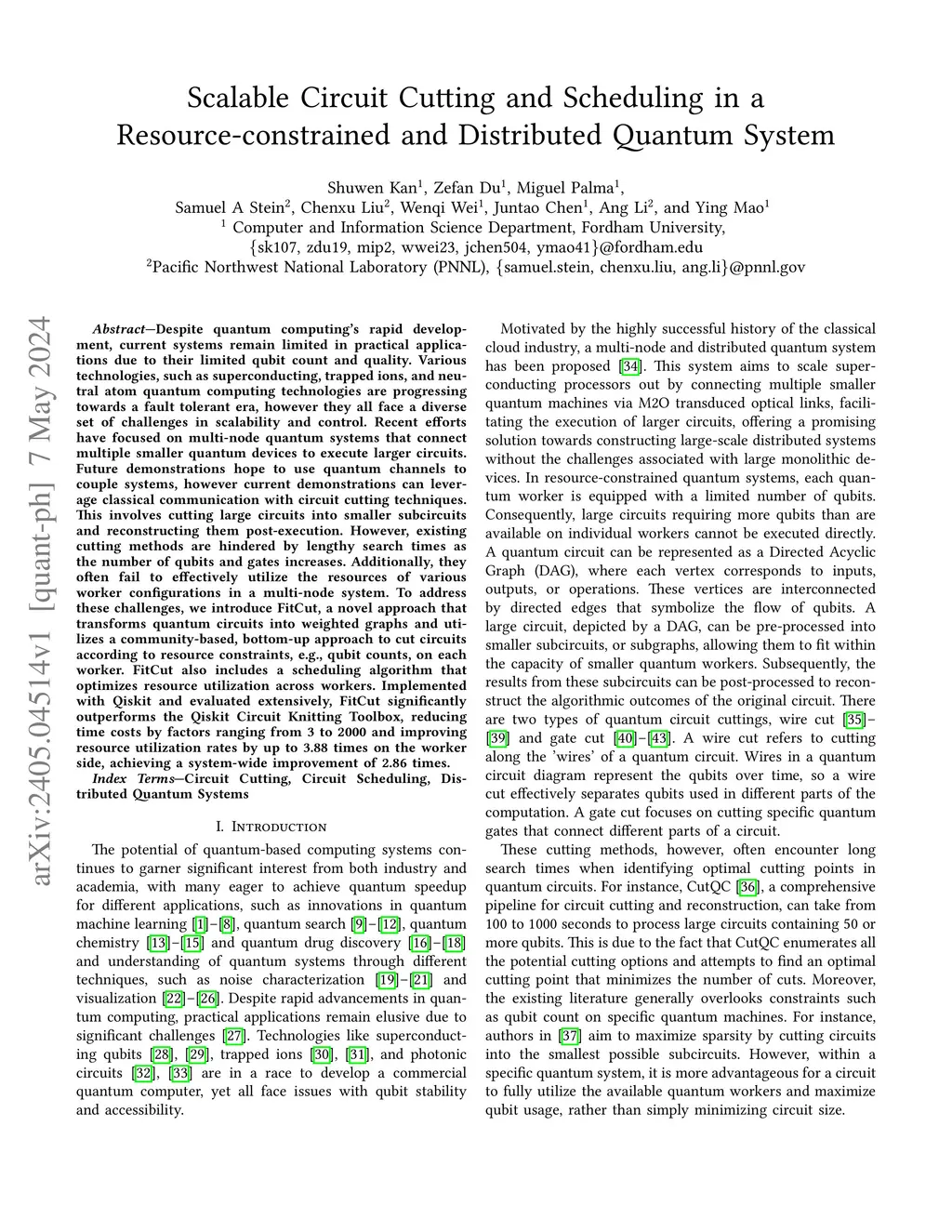 Despite quantum computing's rapid development, current systems remain limited in practical applications due to their limited qubit count and quality. Various technologies, such as superconducting, trapped ions, and neutral atom quantum computing technologies are progressing towards a fault tolerant era, however they all face a diverse set of challenges in scalability and control. Recent efforts have focused on multi-node quantum systems that connect multiple smaller quantum devices to execute larger circuits. Future demonstrations hope to use quantum channels to couple systems, however current demonstrations can leverage classical communication with circuit cutting techniques. This involves cutting large circuits into smaller subcircuits and reconstructing them post-execution. However, existing cutting methods are hindered by lengthy search times as the number of qubits and gates increases. Additionally, they often fail to effectively utilize the resources of various worker configurations in a multi-node system. To address these challenges, we introduce FitCut, a novel approach that transforms quantum circuits into weighted graphs and utilizes a community-based, bottom-up approach to cut circuits according to resource constraints, e.g., qubit counts, on each worker. FitCut also includes a scheduling algorithm that optimizes resource utilization across workers. Implemented with Qiskit and evaluated extensively, FitCut significantly outperforms the Qiskit Circuit Knitting Toolbox, reducing time costs by factors ranging from 3 to 2000 and improving resource utilization rates by up to 3.88 times on the worker side, achieving a system-wide improvement of 2.86 times.