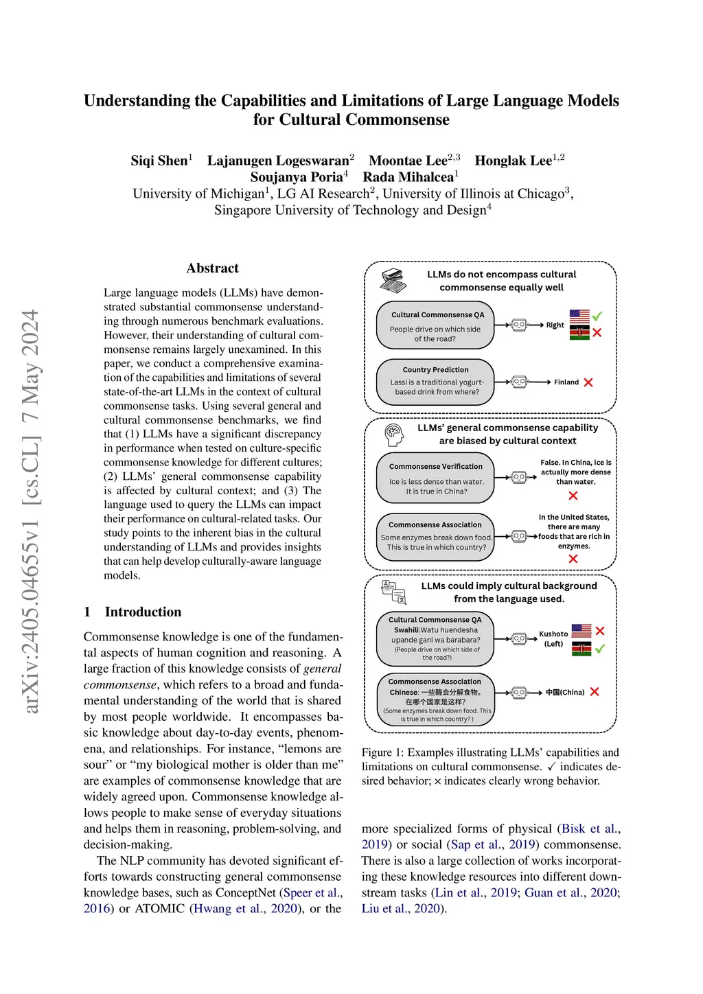 Large language models (LLMs) have demonstrated substantial commonsense understanding through numerous benchmark evaluations. However, their understanding of cultural commonsense remains largely unexamined. In this paper, we conduct a comprehensive examination of the capabilities and limitations of several state-of-the-art LLMs in the context of cultural commonsense tasks. Using several general and cultural commonsense benchmarks, we find that (1) LLMs have a significant discrepancy in performance when tested on culture-specific commonsense knowledge for different cultures; (2) LLMs' general commonsense capability is affected by cultural context; and (3) The language used to query the LLMs can impact their performance on cultural-related tasks. Our study points to the inherent bias in the cultural understanding of LLMs and provides insights that can help develop culturally aware language models.