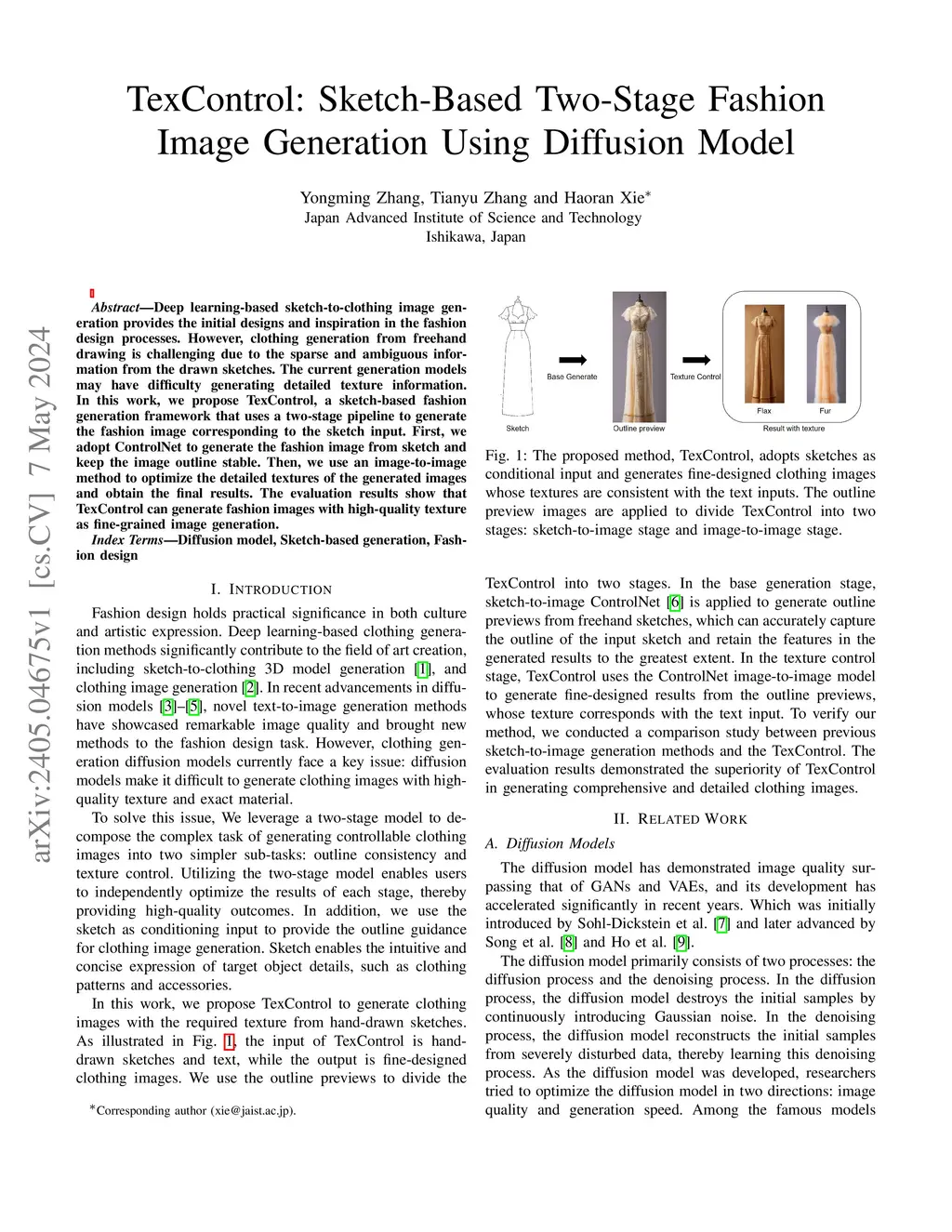 TexControl: Sketch-Based Two-Stage Fashion Image Generation Using