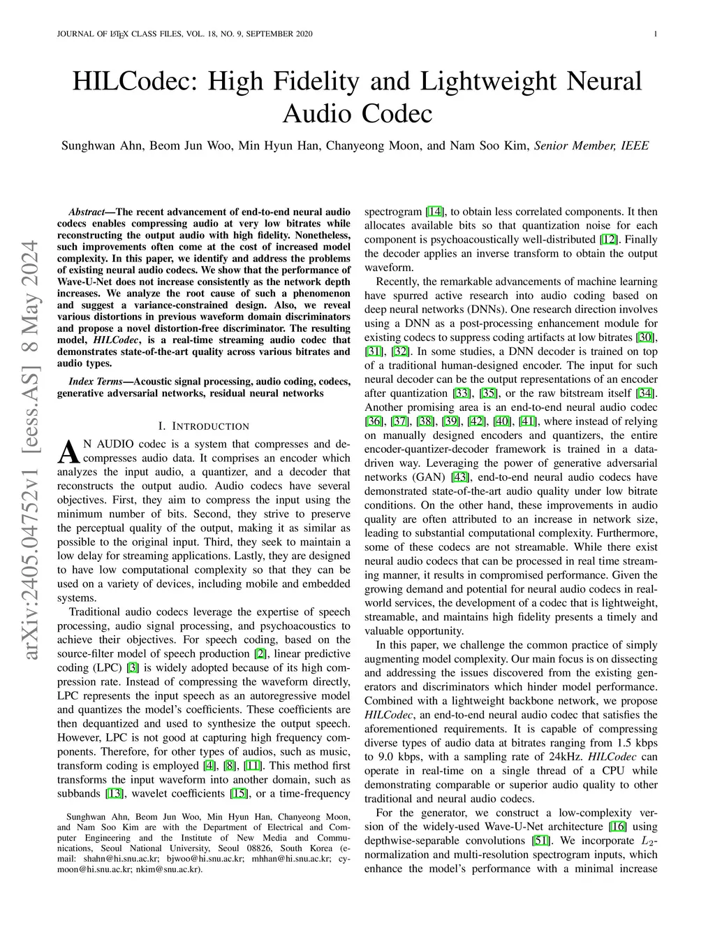 The recent advancement of end-to-end neural audio codecs enables compressing audio at very low bitrates while reconstructing the output audio with high fidelity. Nonetheless, such improvements often come at the cost of increased model complexity. In this paper, we identify and address the problems of existing neural audio codecs. We show that the performance of Wave-U-Net does not increase consistently as the network depth increases. We analyze the root cause of such a phenomenon and suggest a variance-constrained design. Also, we reveal various distortions in previous waveform domain discriminators and propose a novel distortion-free discriminator. The resulting model, \textit{HILCodec}, is a real-time streaming audio codec that demonstrates state-of-the-art quality across various bitrates and audio types.