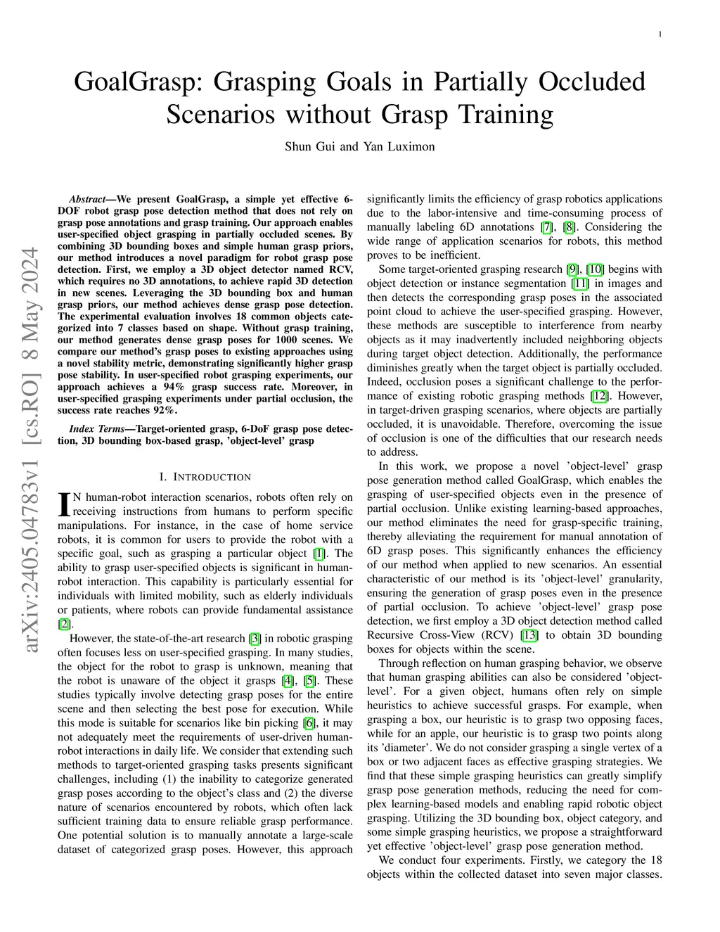 GoalGrasp: Grasping Goals in Partially Occluded Scenarios without Grasp Training