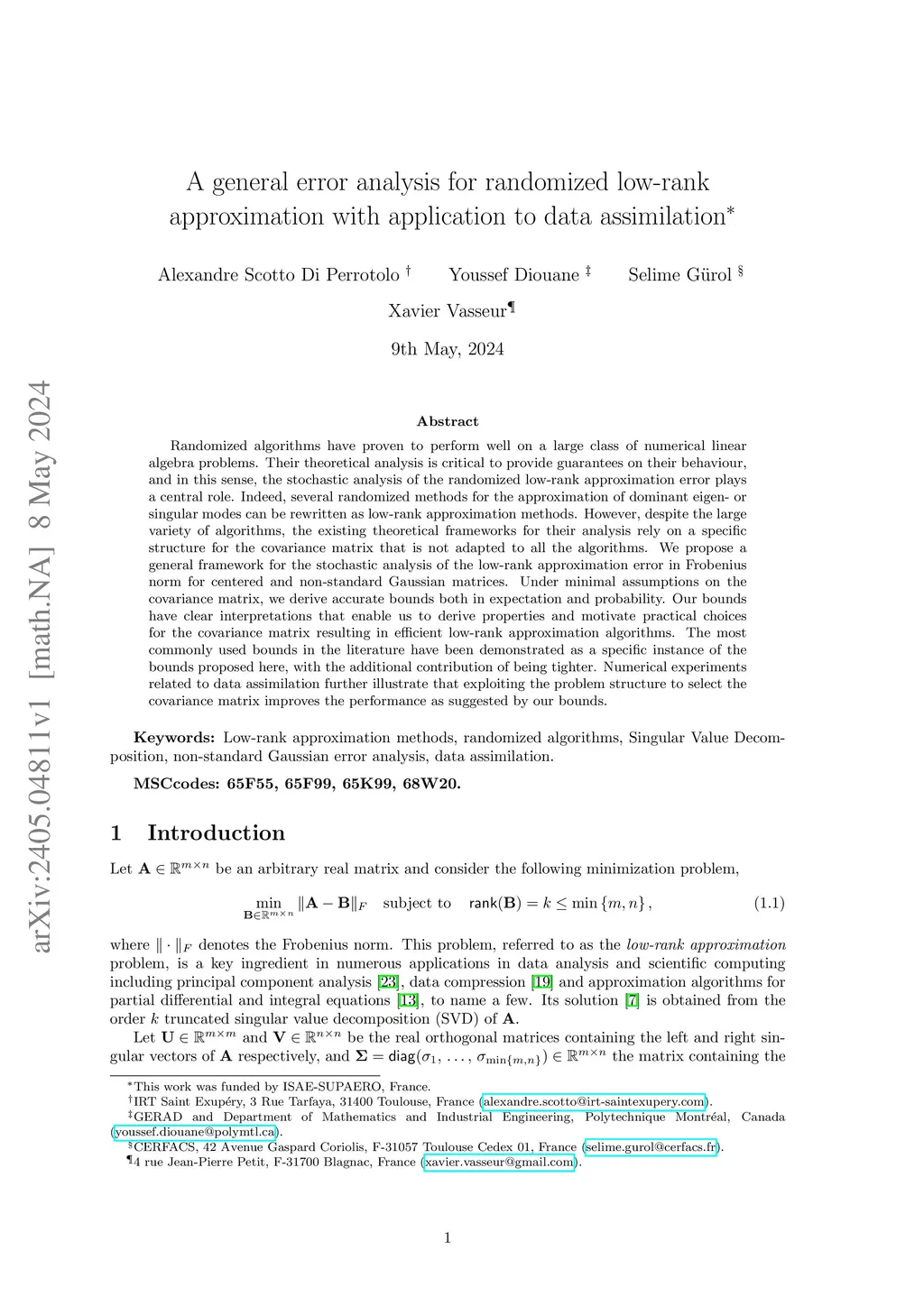 A unified error analysis for randomized low-rank approximation with application to data assimilation