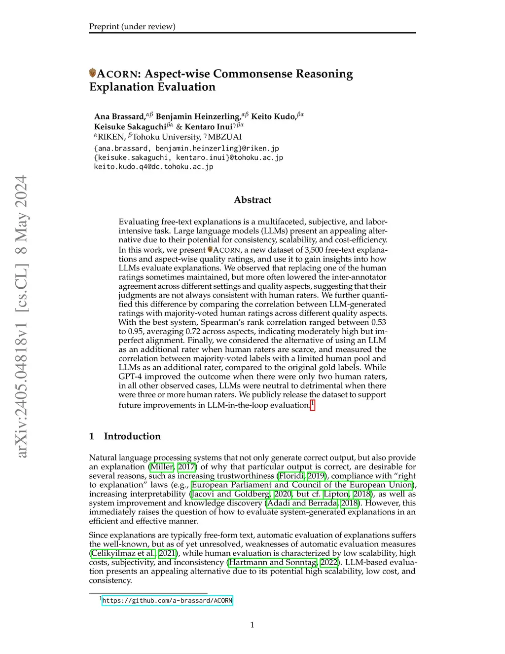 ACORN: Aspect-wise Commonsense Reasoning Explanation Evaluation