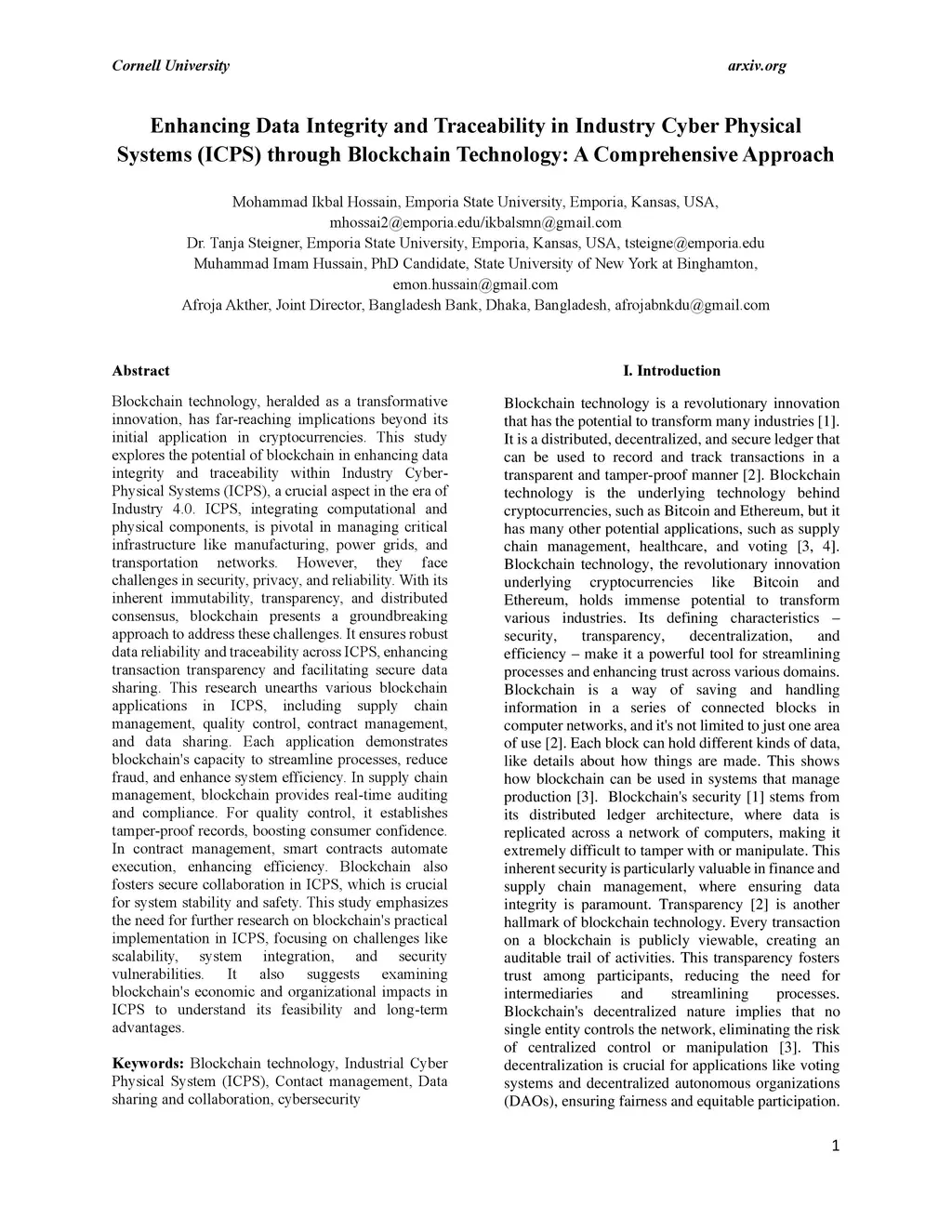 Enhancing Data Integrity and Traceability in Industry Cyber Physical