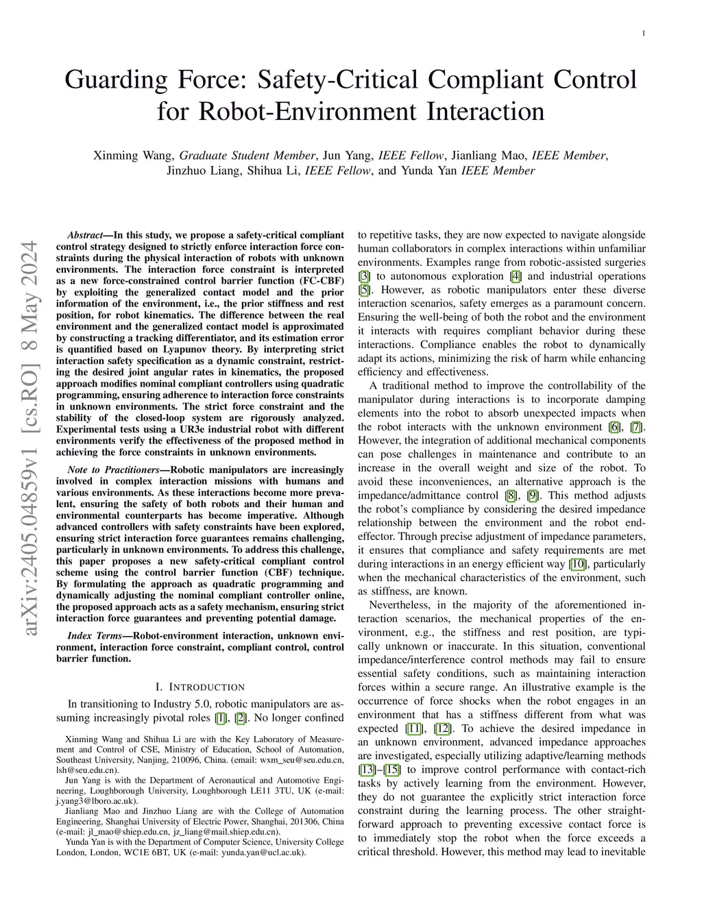 Guarding Force: Safety-Critical Compliant Control for Robot-Environment
