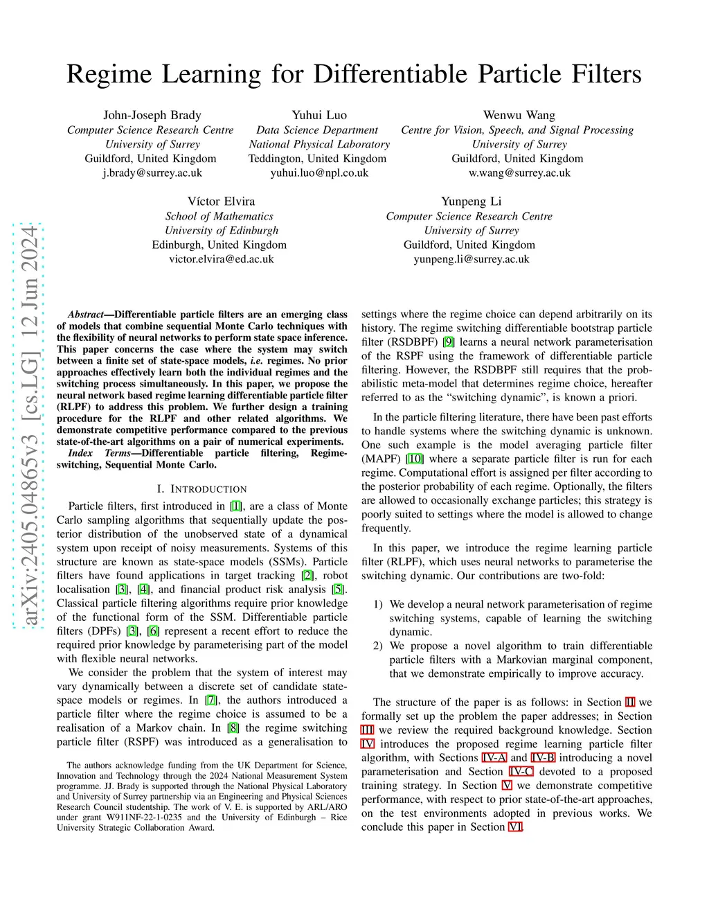 Differentiable particle filters are an emerging class of models that combine sequential Monte Carlo techniques with the flexibility of neural networks to perform state space inference. This paper concerns the case where the system may switch between a finite set of state-space models, i.e. regimes. No prior approaches effectively learn both the individual regimes and the switching process simultaneously. In this paper, we propose the neural network based regime learning differentiable particle filter (RLPF) to address this problem. We further design a training procedure for the RLPF and other related algorithms. We demonstrate competitive performance compared to the previous state-of-the-art algorithms on a pair of numerical experiments.