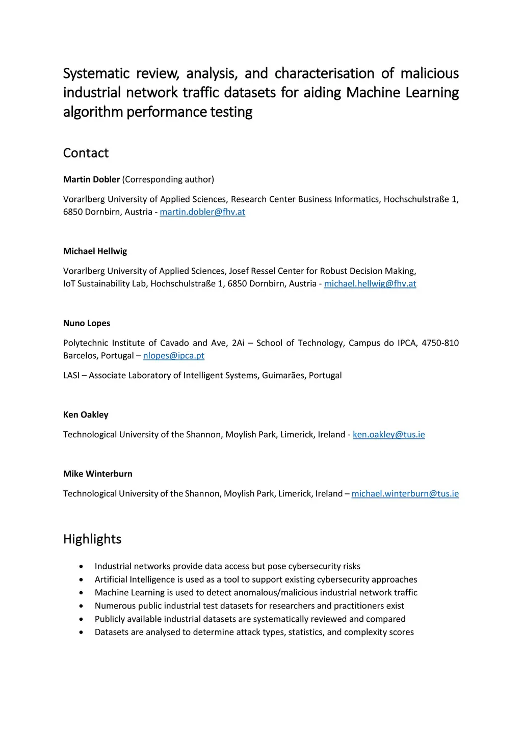 industrial network traffic datasets for aiding Machine Learning algorithm