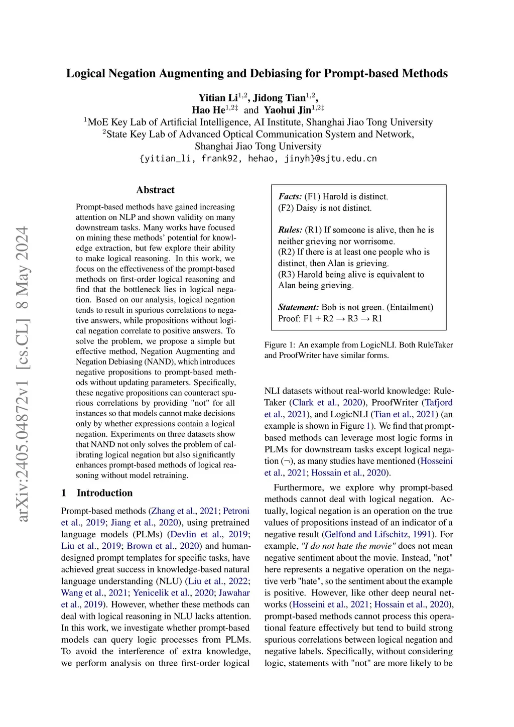Logical Negation Augmenting and Debiasing for Prompt-based Methods