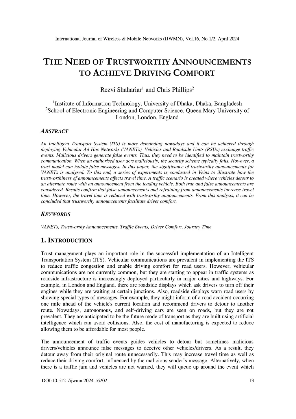 The Need Of Trustworthy Announcements To Achieve Driving Comfort