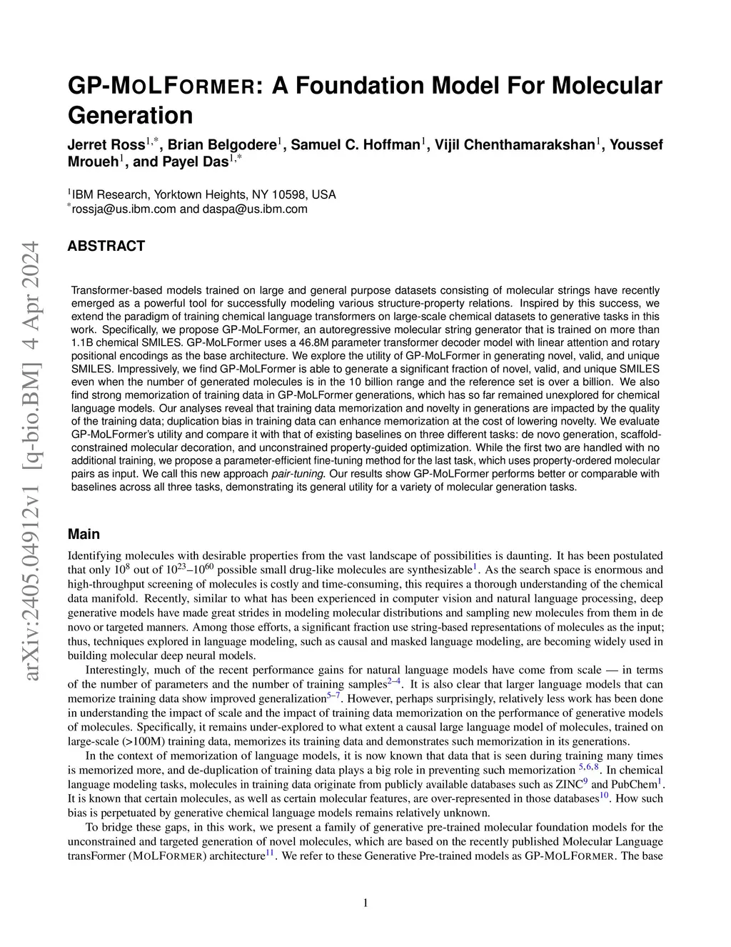 GP-MoLFormer: A Foundation Model For Molecular Generation