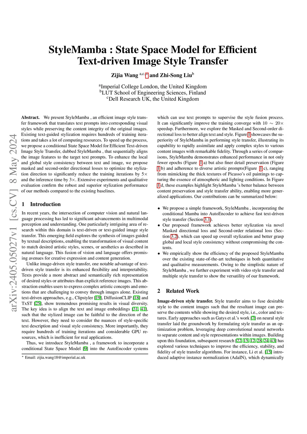 StyleMamba : State Space Model for Efficient Text-driven Image Style