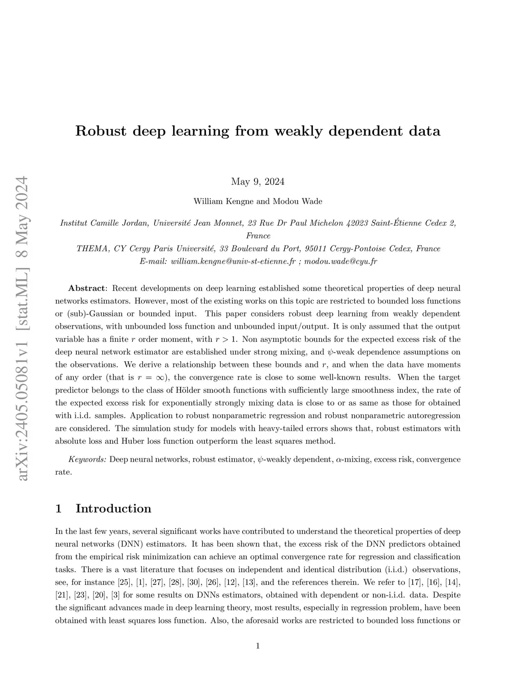 Recent developments on deep learning established some theoretical properties of deep neural networks estimators. However, most of the existing works on this topic are restricted to bounded loss functions or (sub)-Gaussian or bounded input. This paper considers robust deep learning from weakly dependent observations, with unbounded loss function and unbounded input/output. It is only assumed that the output variable has a finite order moment, with . Non asymptotic bounds for the expected excess risk of the deep neural network estimator are established under strong mixing, and -weak dependence assumptions on the observations. We derive a relationship between these bounds and , and when the data have moments of any order (that is ), the convergence rate is close to some well-known results. When the target predictor belongs to the class of H\"older smooth functions with sufficiently large smoothness index, the rate of the expected excess risk for exponentially strongly mixing data is close to or as same as those for obtained with i.i.d. samples. Application to robust nonparametric regression and robust nonparametric autoregression are considered. The simulation study for models with heavy-tailed errors shows that, robust estimators with absolute loss and Huber loss function outperform the least squares method.