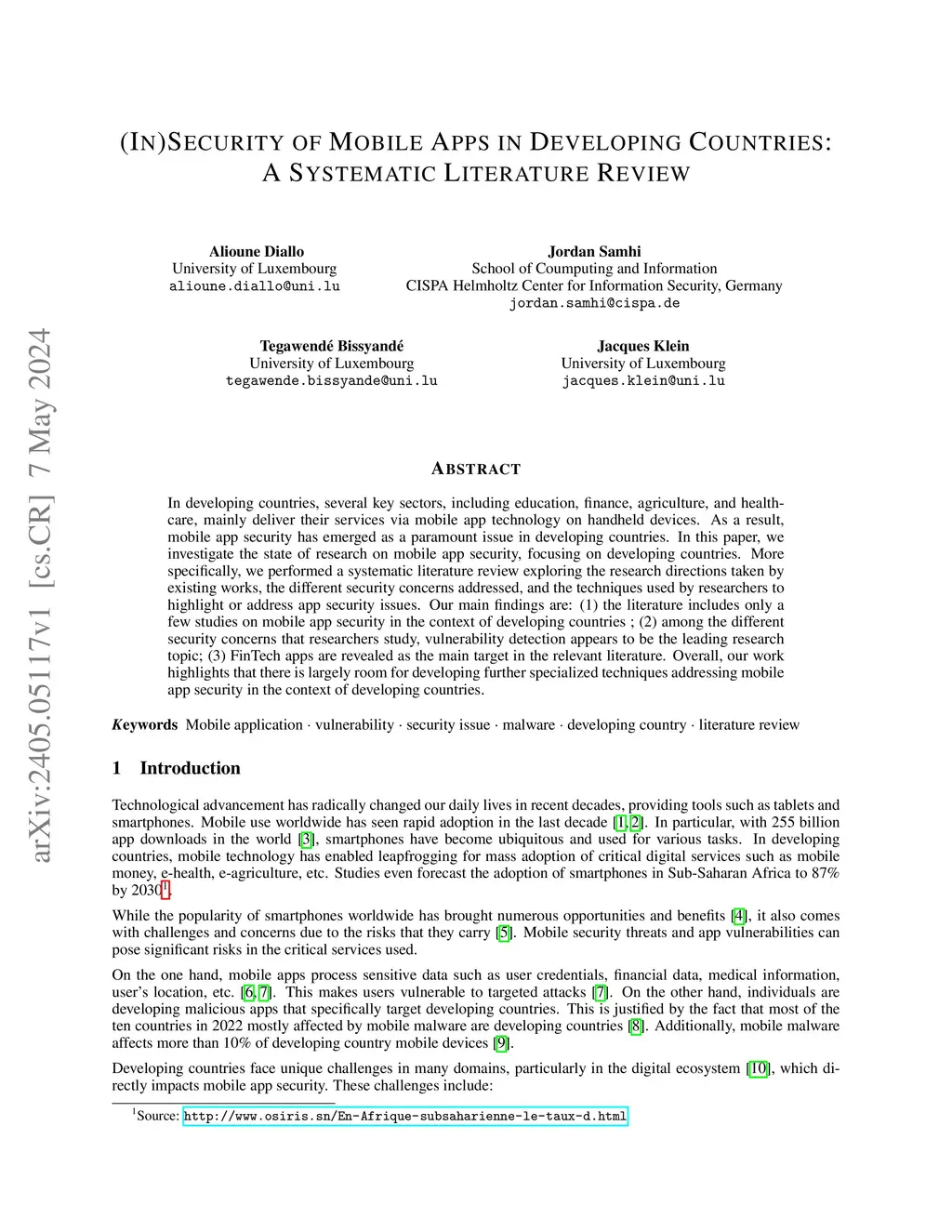 (In)Security of Mobile Apps in Developing Countries: A Systematic