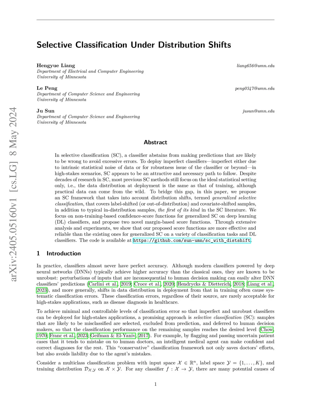 Selective Classification Under Distribution Shifts