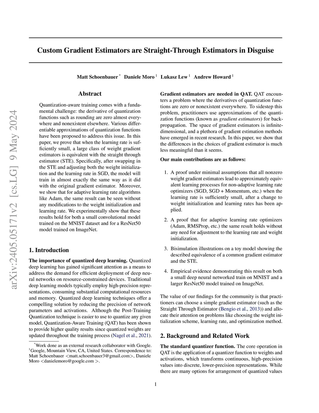 Quantization-aware training comes with a fundamental challenge: the derivative of quantization functions such as rounding are zero almost everywhere and nonexistent elsewhere. Various differentiable approximations of quantization functions have been proposed to address this issue. In this paper, we prove that when the learning rate is sufficiently small, a large class of weight gradient estimators is equivalent with the straight through estimator (STE). Specifically, after swapping in the STE and adjusting both the weight initialization and the learning rate in SGD, the model will train in almost exactly the same way as it did with the original gradient estimator. Moreover, we show that for adaptive learning rate algorithms like Adam, the same result can be seen without any modifications to the weight initialization and learning rate. We experimentally show that these results hold for both a small convolutional model trained on the MNIST dataset and for a ResNet50 model trained on ImageNet.