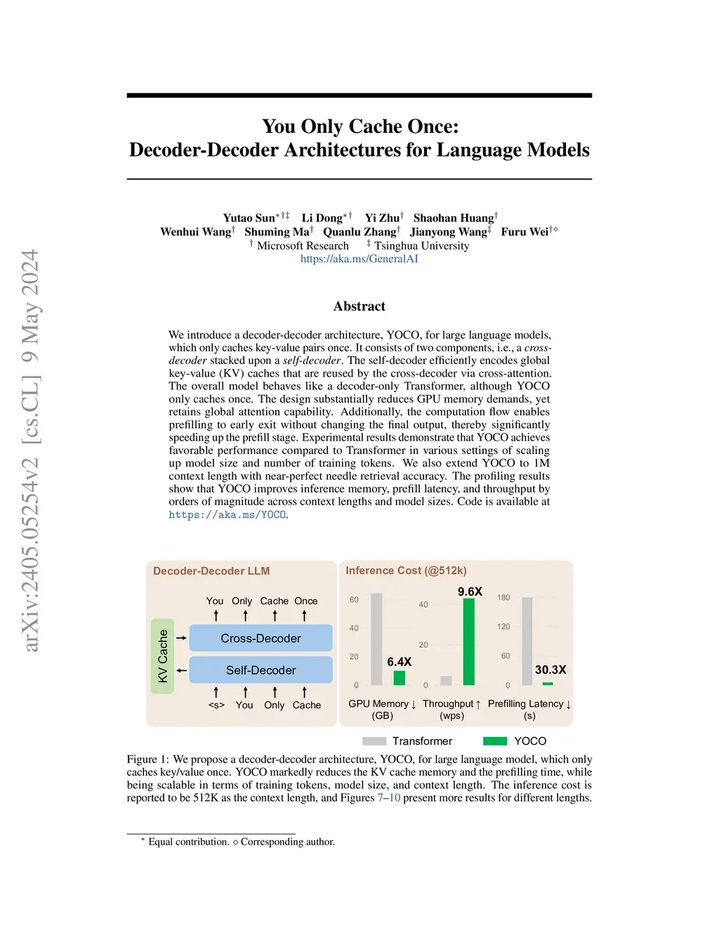 You Only Cache Once: Decoder-Decoder Architectures for Language Models