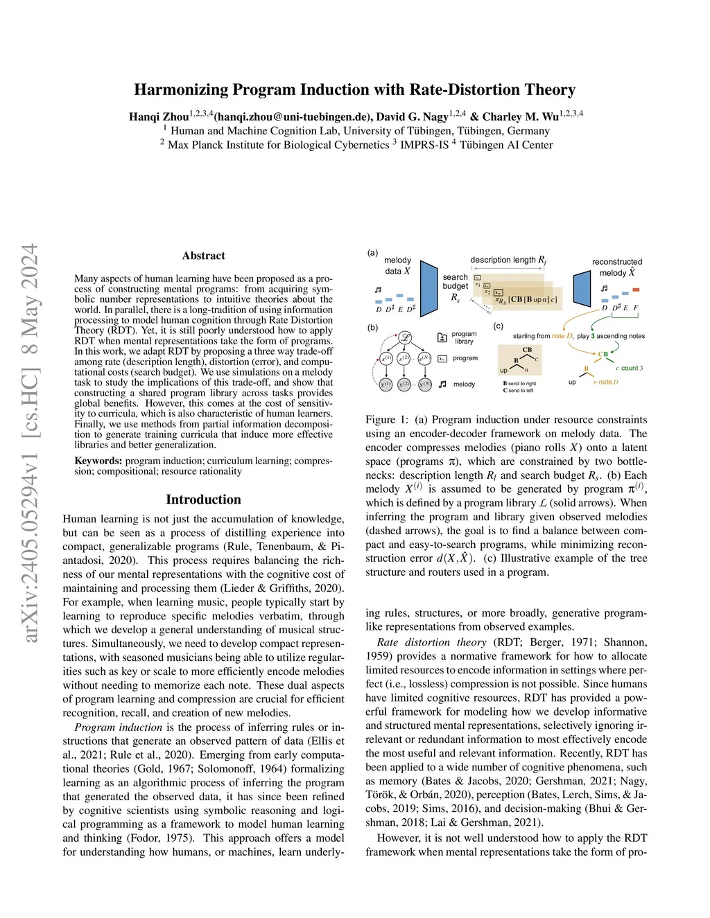 Many aspects of human learning have been proposed as a process of constructing mental programs: from acquiring symbolic number representations to intuitive theories about the world. In parallel, there is a long-tradition of using information processing to model human cognition through Rate Distortion Theory (RDT). Yet, it is still poorly understood how to apply RDT when mental representations take the form of programs. In this work, we adapt RDT by proposing a three way trade-off among rate (description length), distortion (error), and computational costs (search budget). We use simulations on a melody task to study the implications of this trade-off, and show that constructing a shared program library across tasks provides global benefits. However, this comes at the cost of sensitivity to curricula, which is also characteristic of human learners. Finally, we use methods from partial information decomposition to generate training curricula that induce more effective libraries and better generalization.